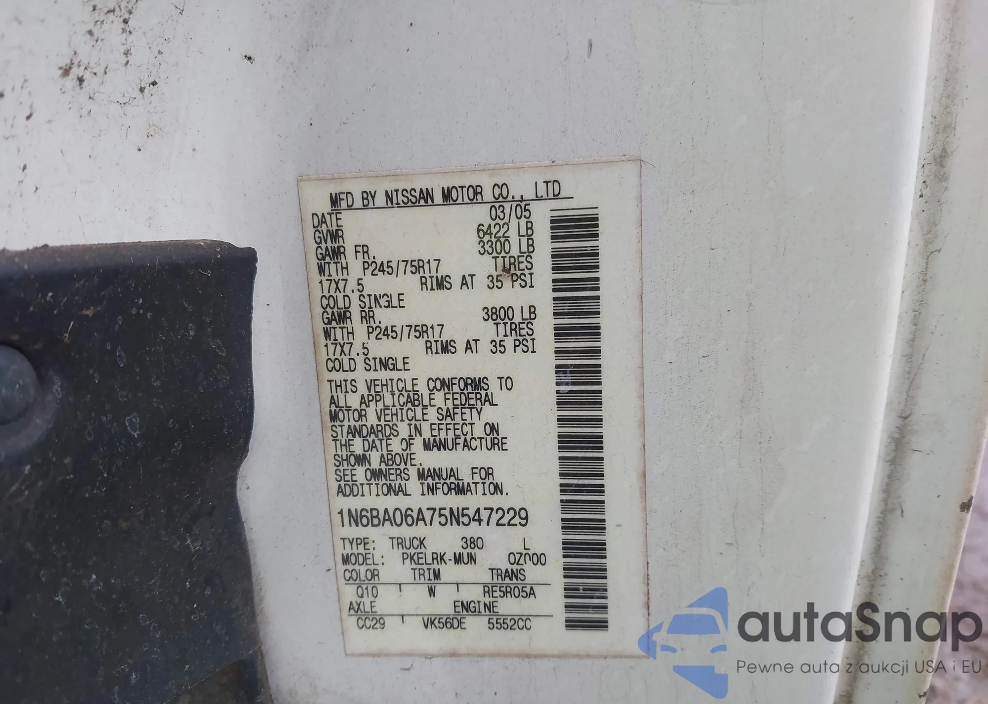• VIN: 1N6BA06A75N547229