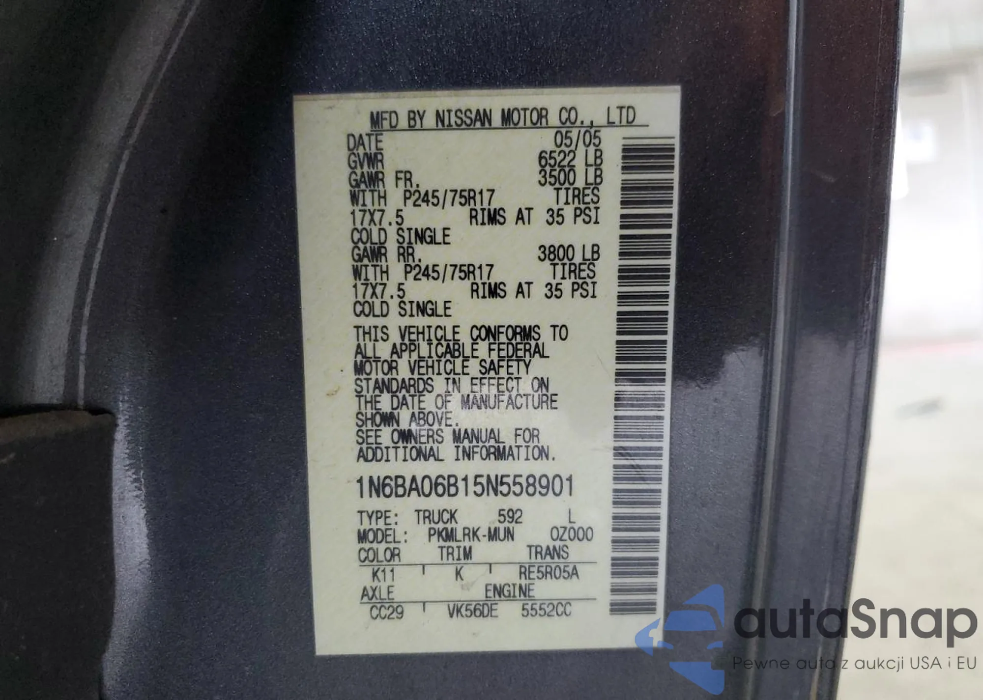 VIN: 1N6BA06B15N558901