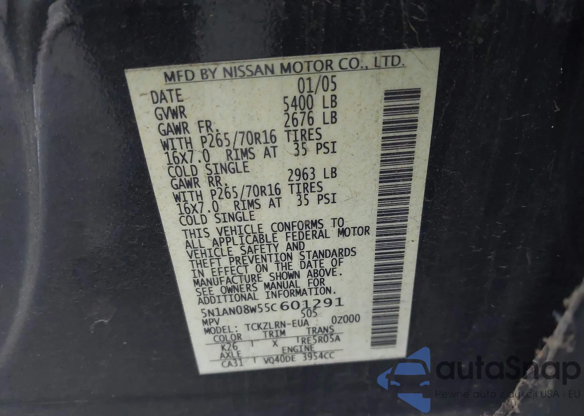 VIN: 5N1AN08W55C601291