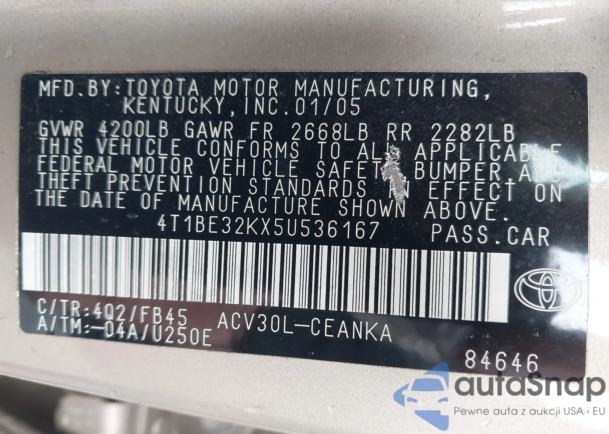 VIN: 4T1BE32KX5U536167