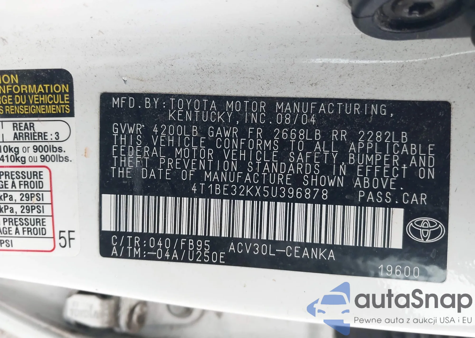 VIN: 4T1BE32KX5U396878