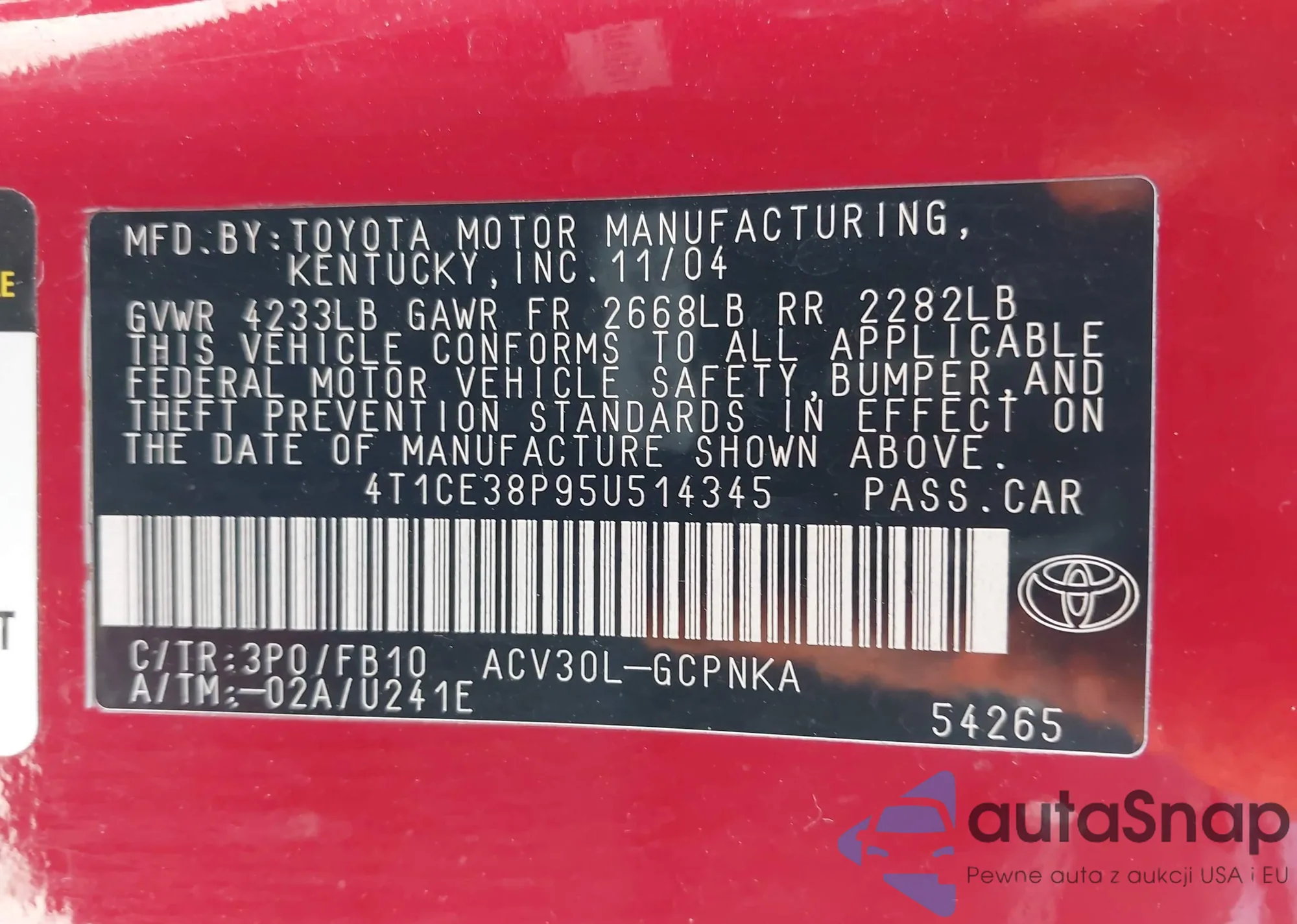 • VIN: 4T1CE38P95U514345