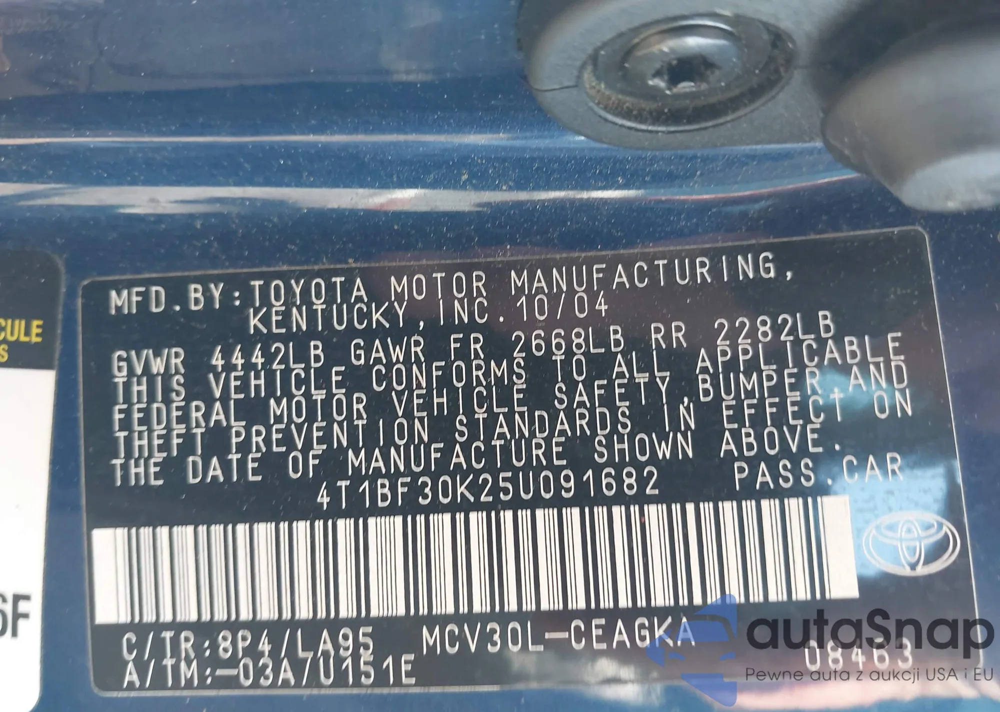 Samochód Toyota Camry 2005 (VIN 4T1BF30K25U091682) nie był wcześniej licytowany. Dokumenty są czyste, przebieg odpowiada lub jest niższy niż średnia rynku. Sprzedaje go firma ubezpieczeniowa – polecamy zakup. Dostawa do portu zajmie ok. 6–8 tygodni.