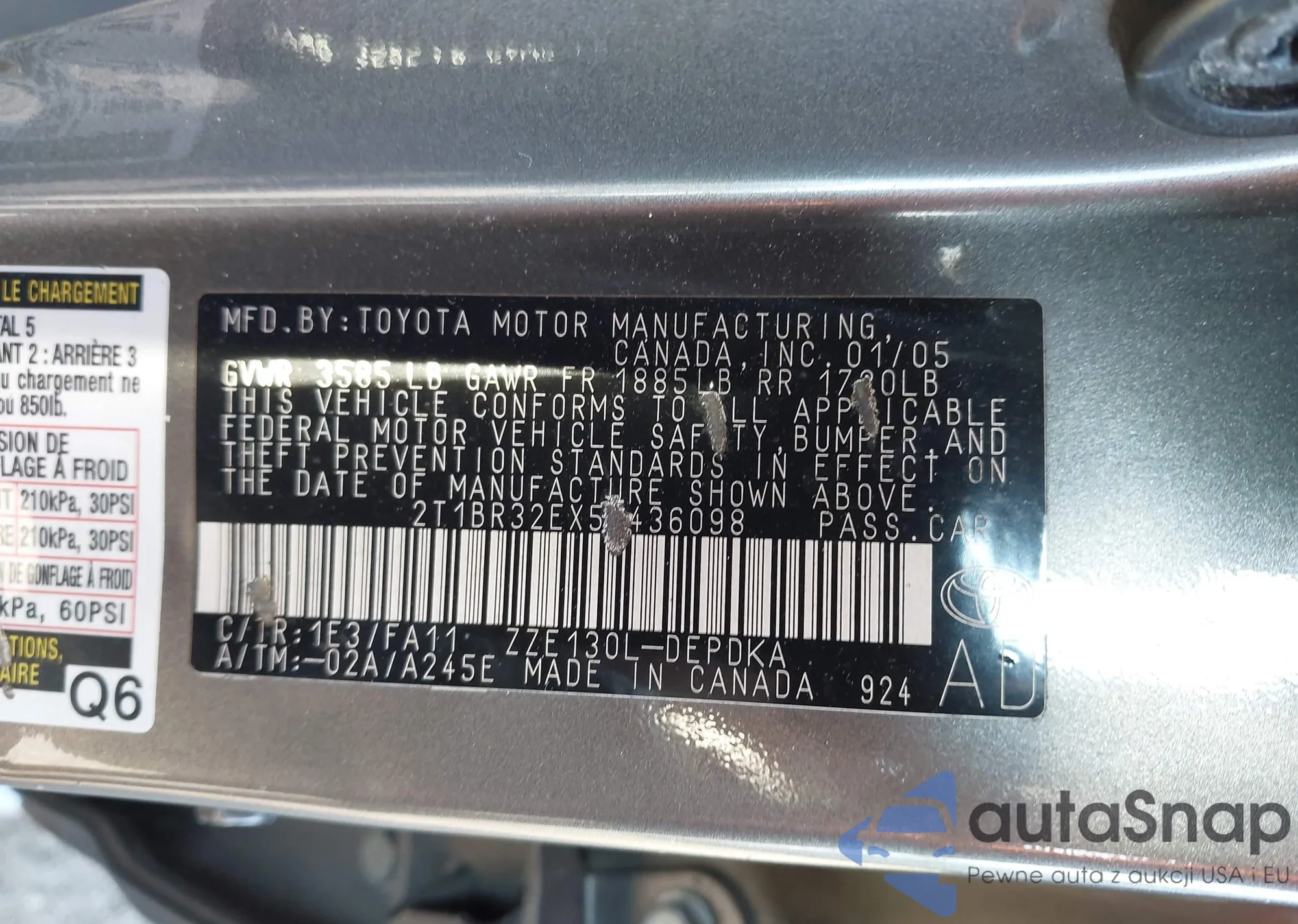 • VIN: 2T1BR32EX5C436098