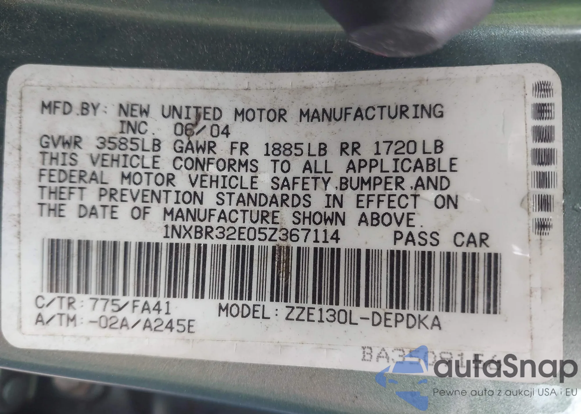 VIN: 1NXBR32E05Z367114