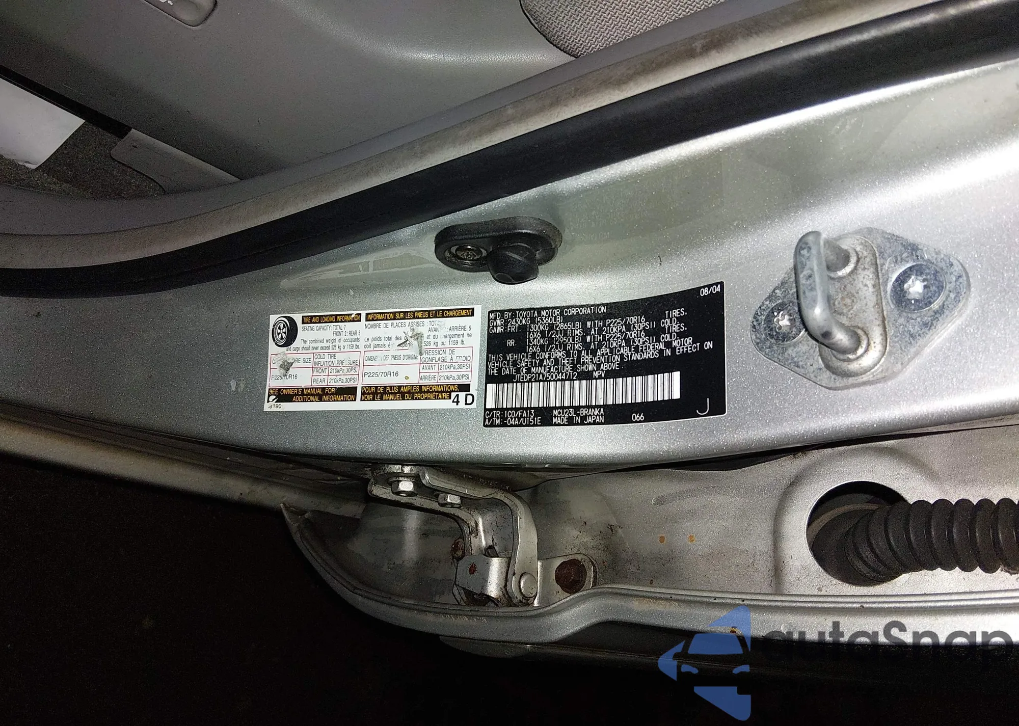 • VIN: JTEDP21A750044712