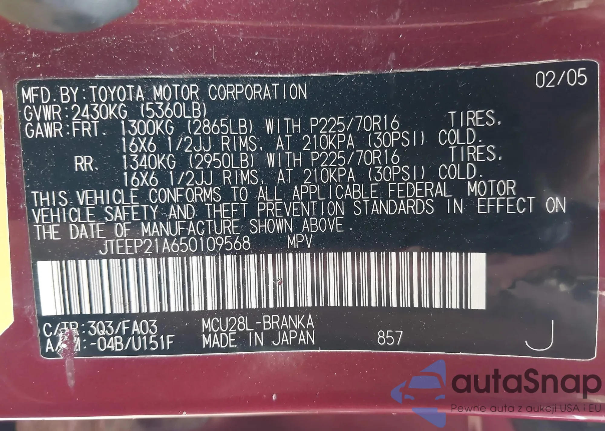 VIN: JTEEP21A650109568