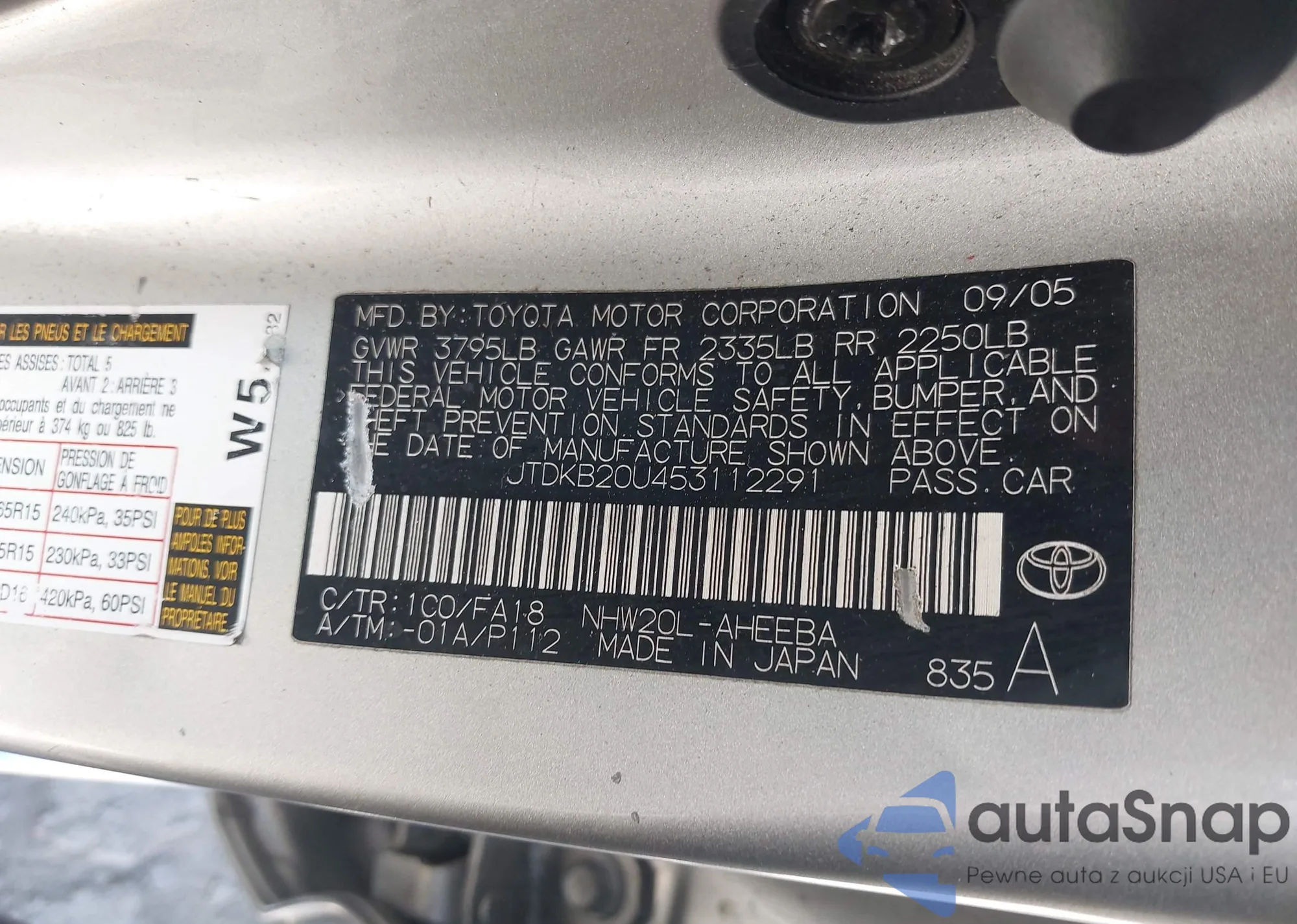 VIN: JTDKB20U453112291