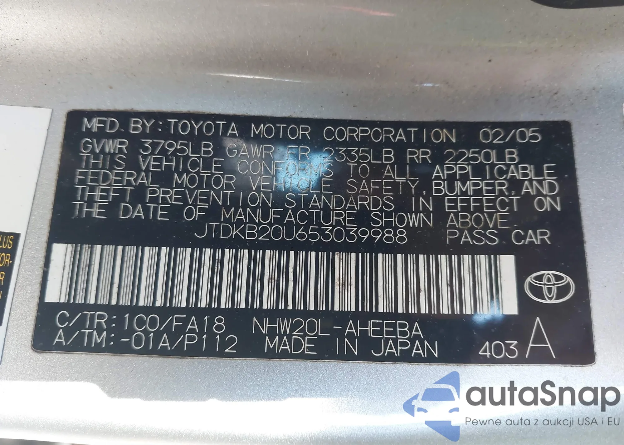 VIN: JTDKB20U653039988