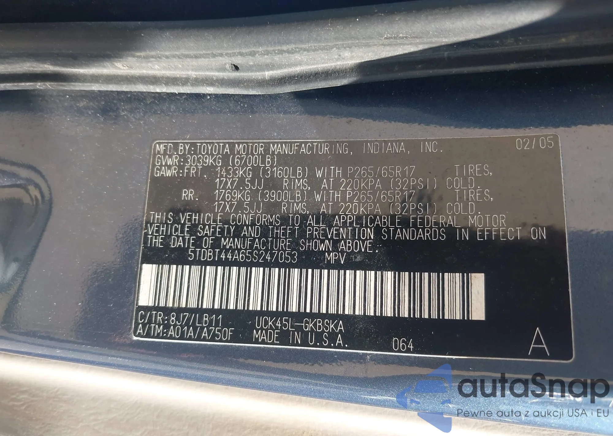 Toyota Sequoia 2005 – Historia pojazdu (sprzedany na IAAI)
