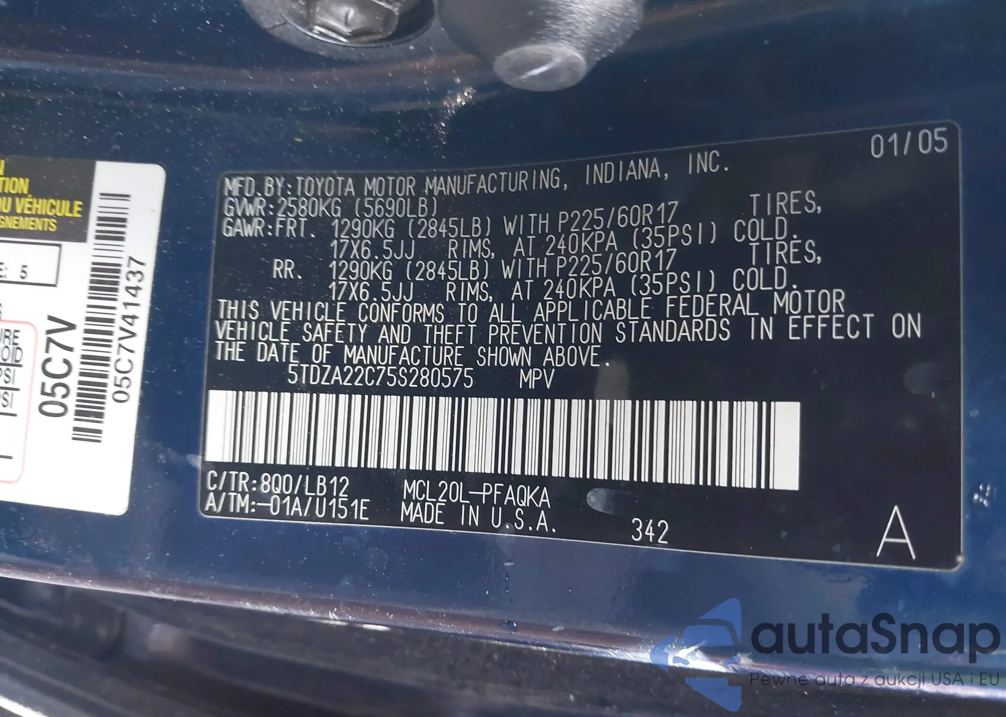 • VIN: 5TDZA22C75S280575