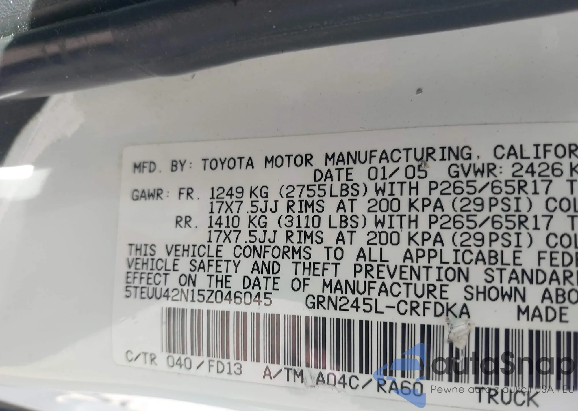 VIN: 5TEUU42N15Z046045