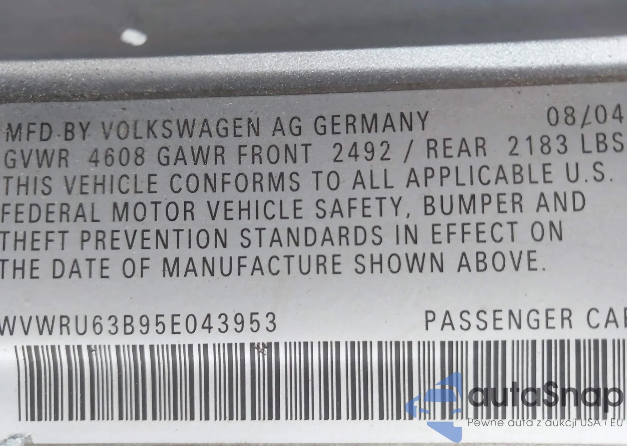 VIN: WVWRU63B95E043953