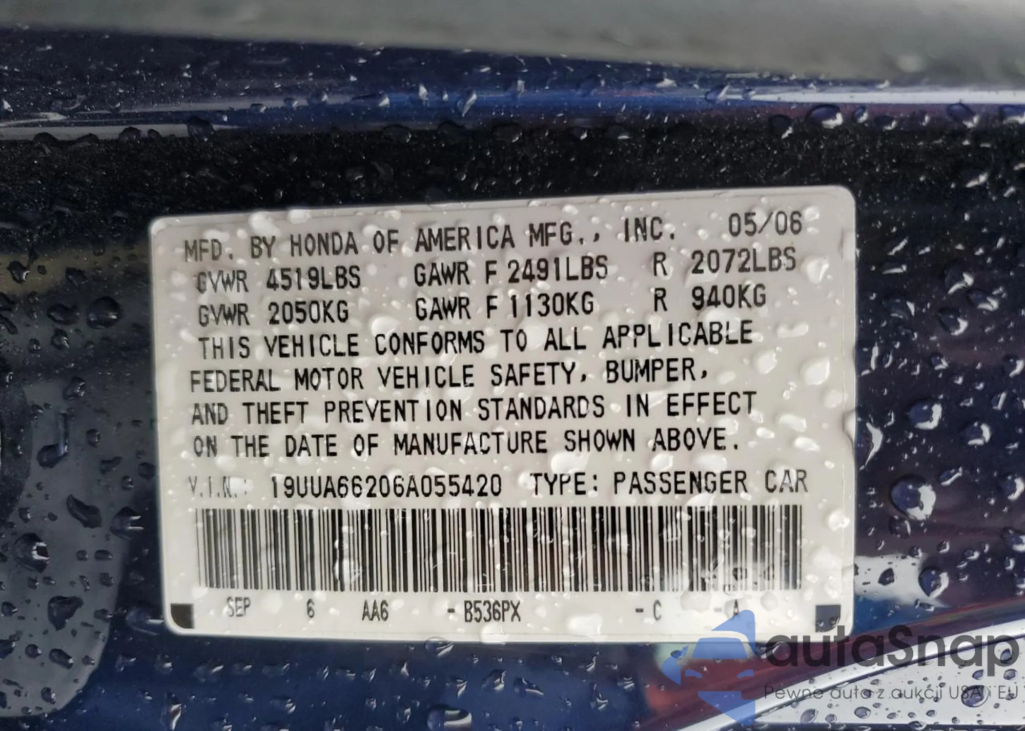 VIN: 19UUA66206A055420