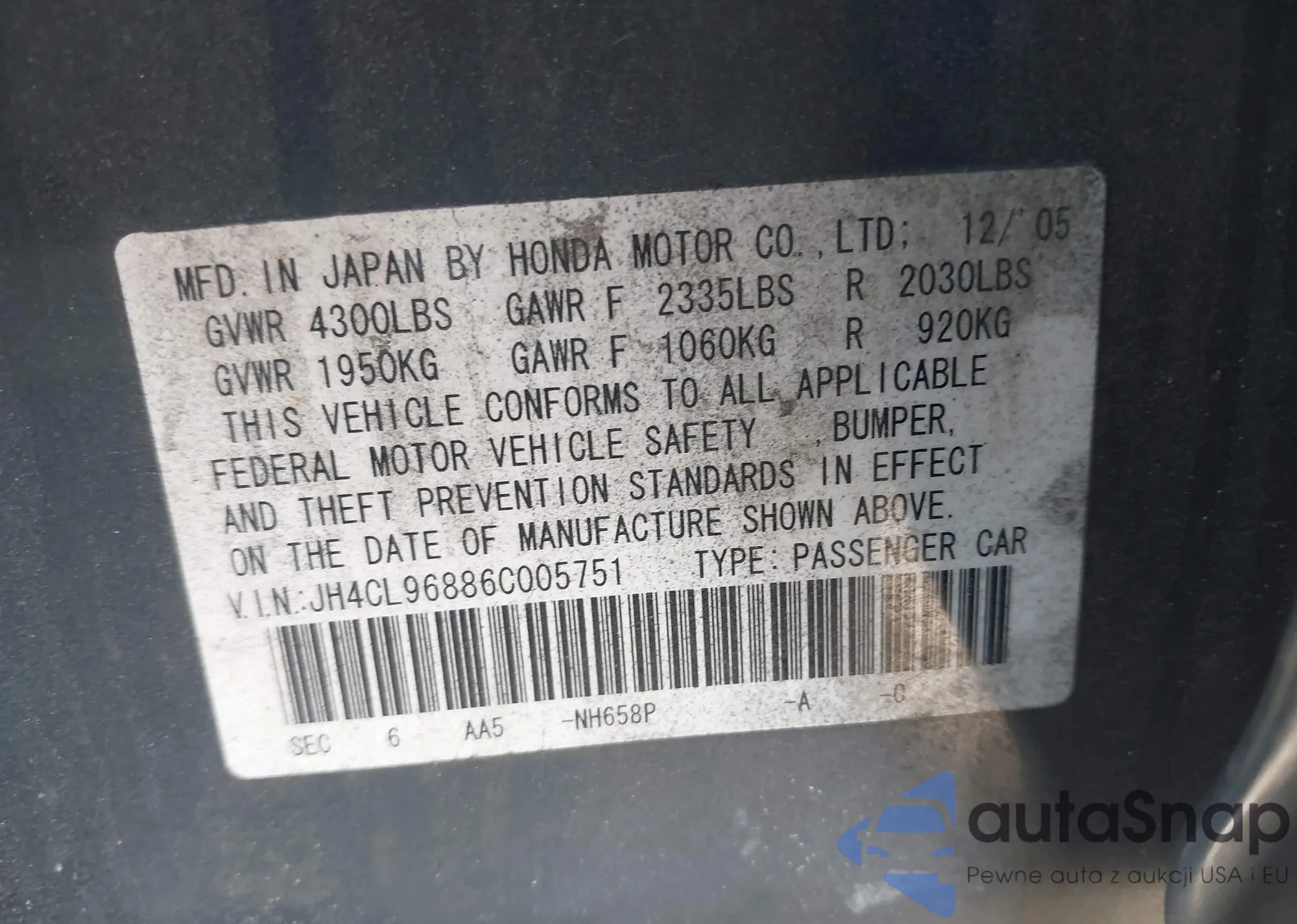 VIN: JH4CL96886C005751