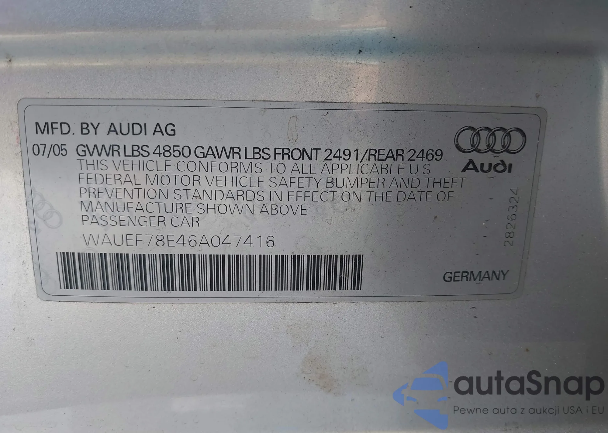 • VIN: WAUEF78E46A047416