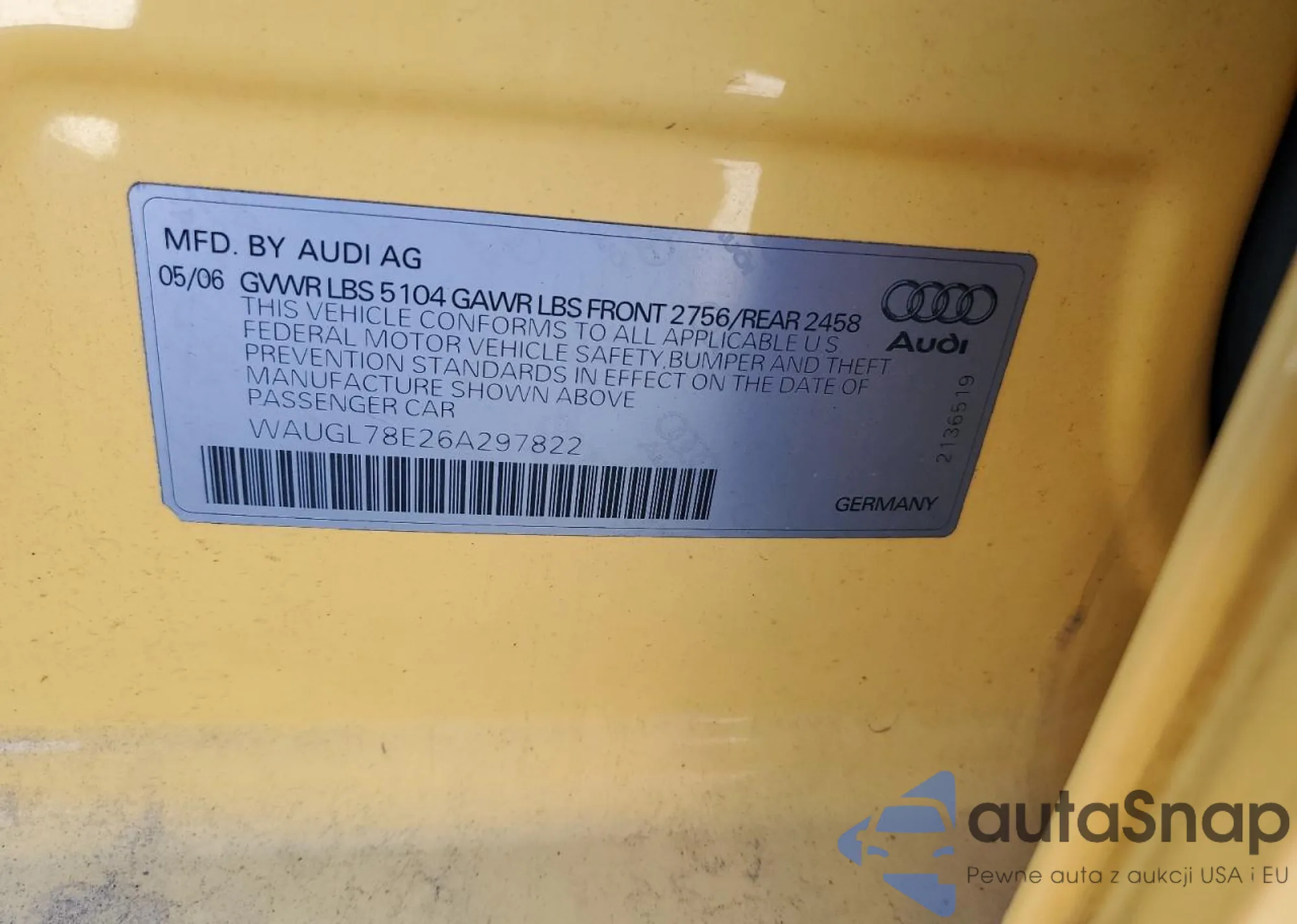 VIN: WAUGL78E26A297822