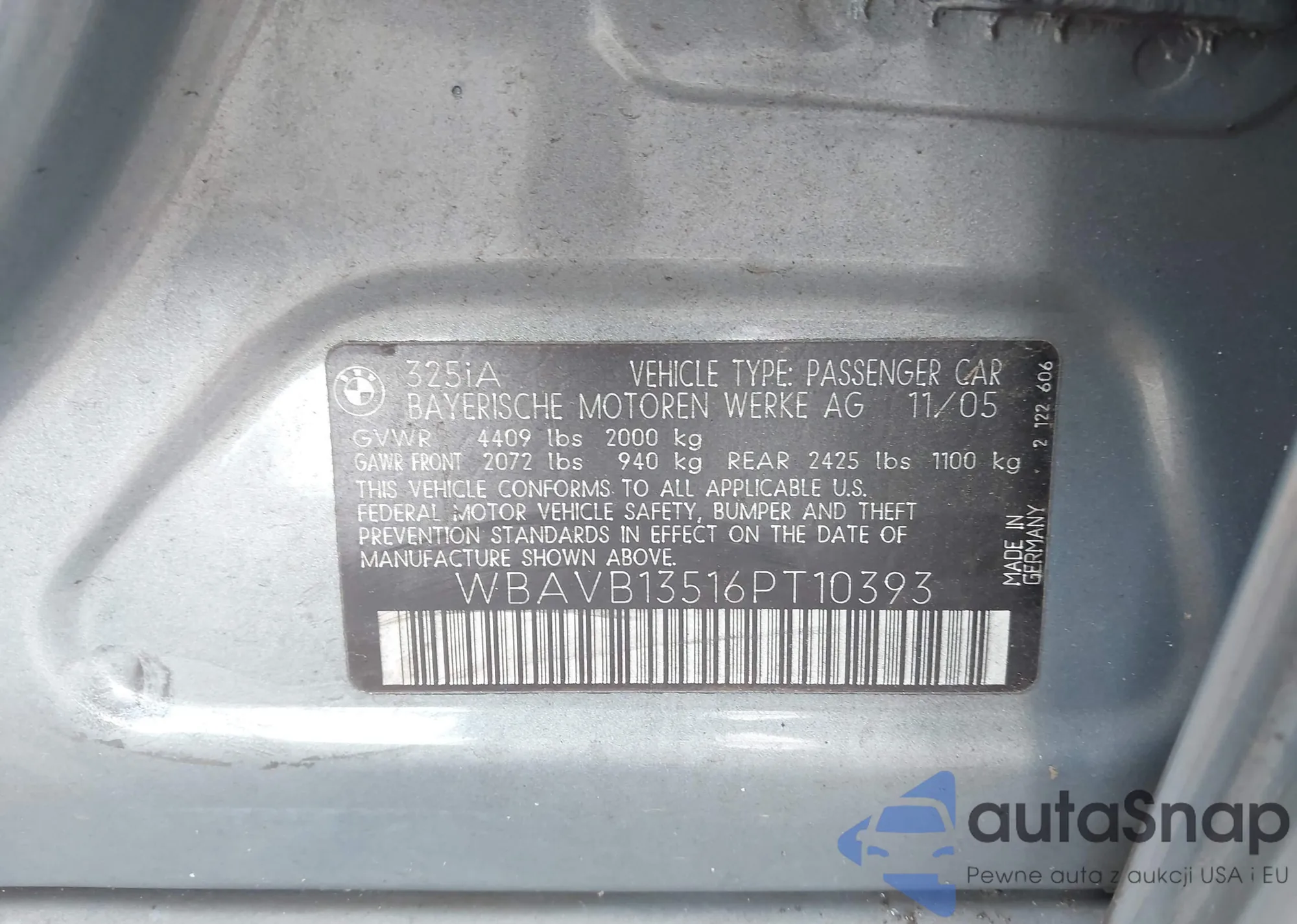 VIN: WBAVB13516PT10393