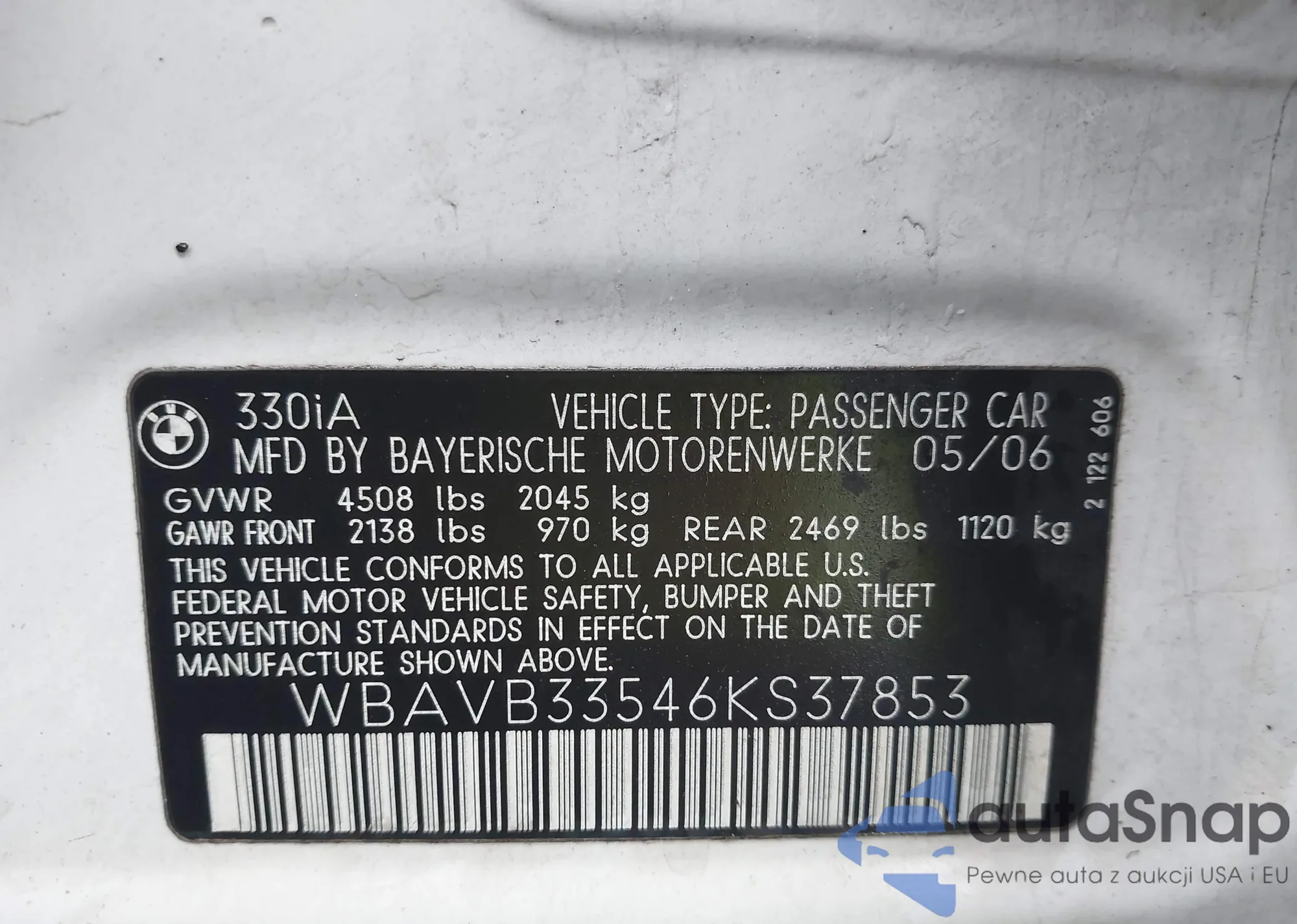 VIN: WBAVB33546KS37853