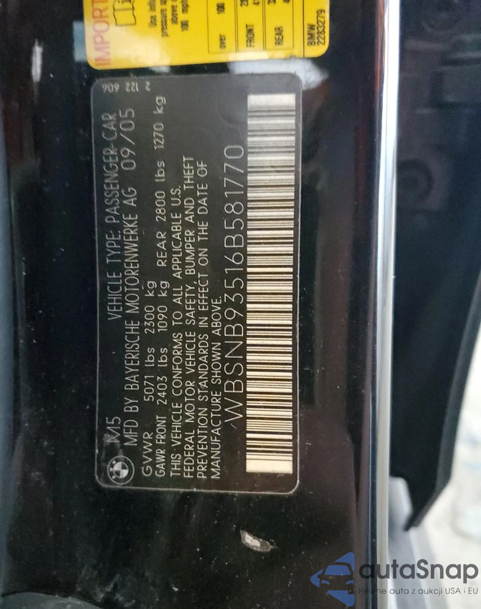 VIN: WBSNB93516B581770