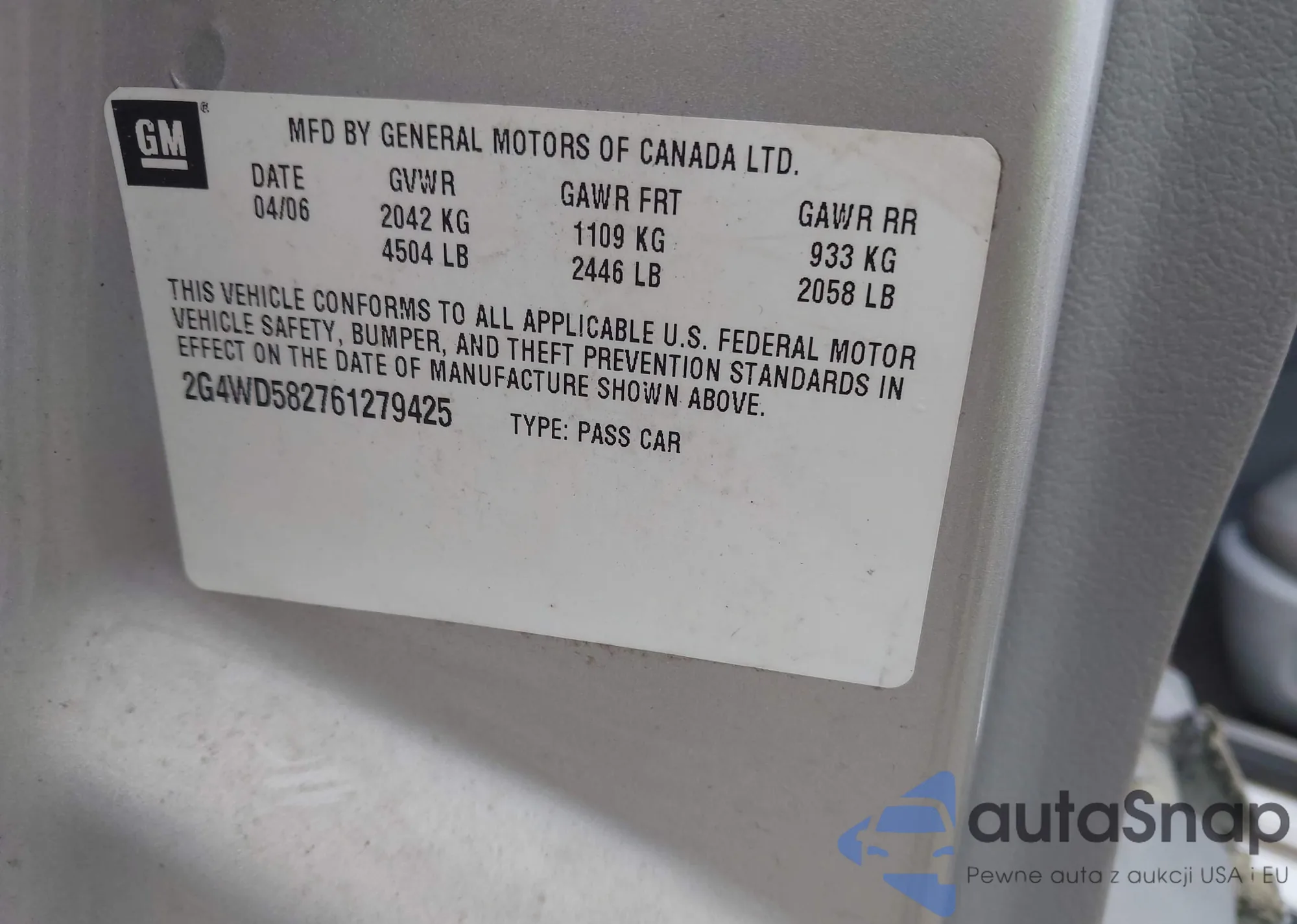 VIN: 2G4WD582761279425