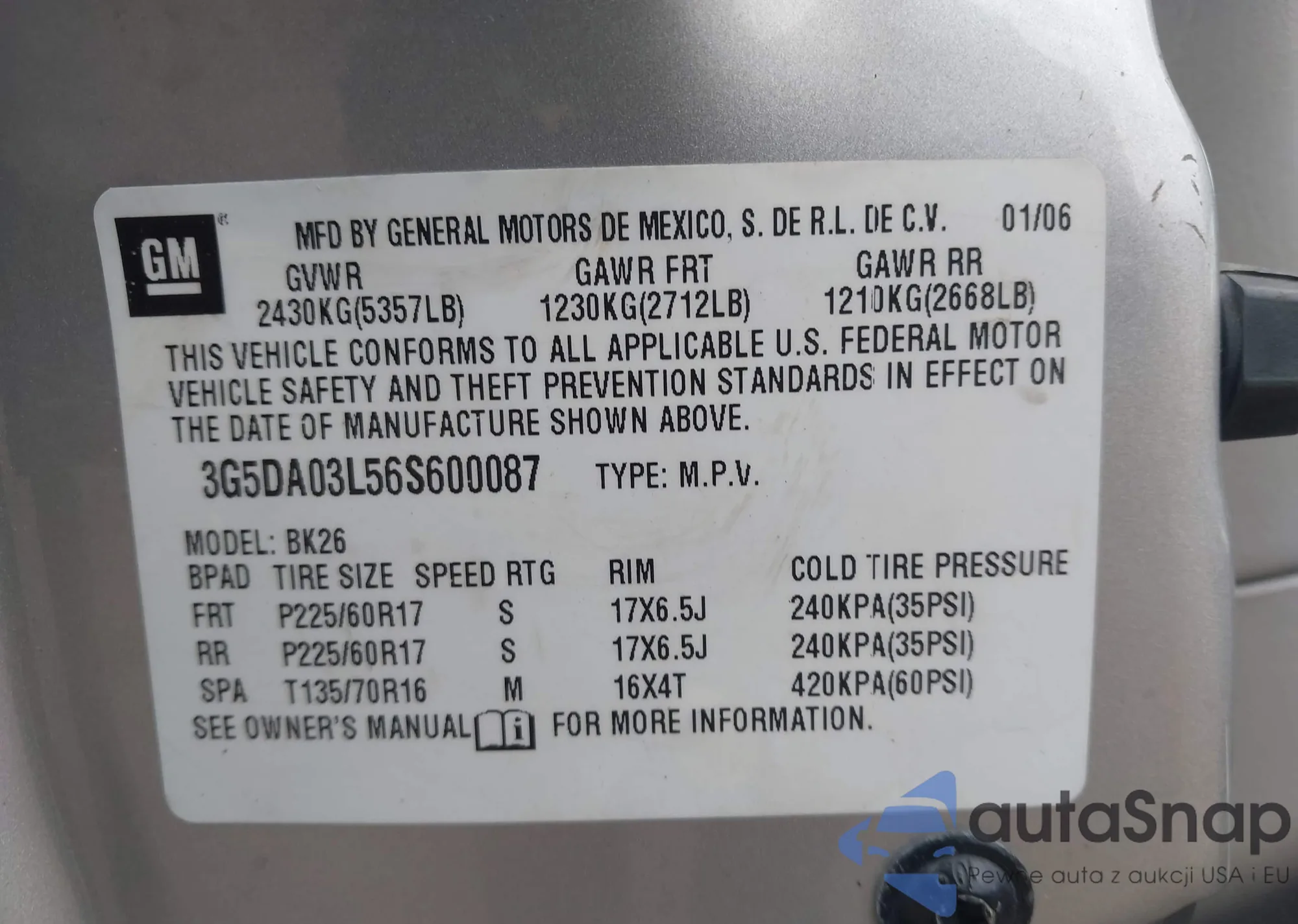 • VIN: 3G5DA03L56S600087