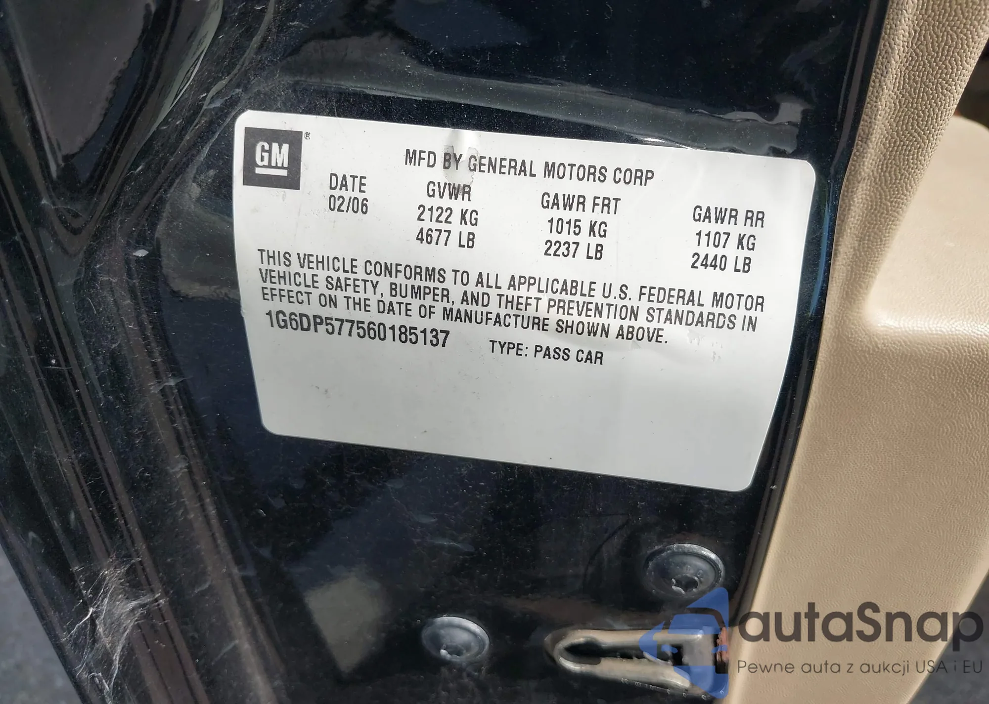 • VIN: 1G6DP577560185137