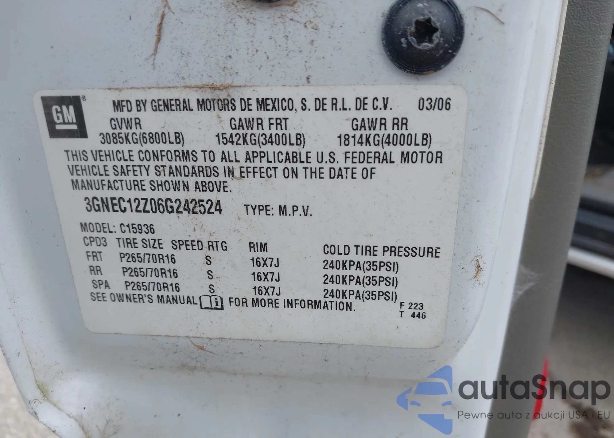• VIN: 3GNEC12Z06G242524