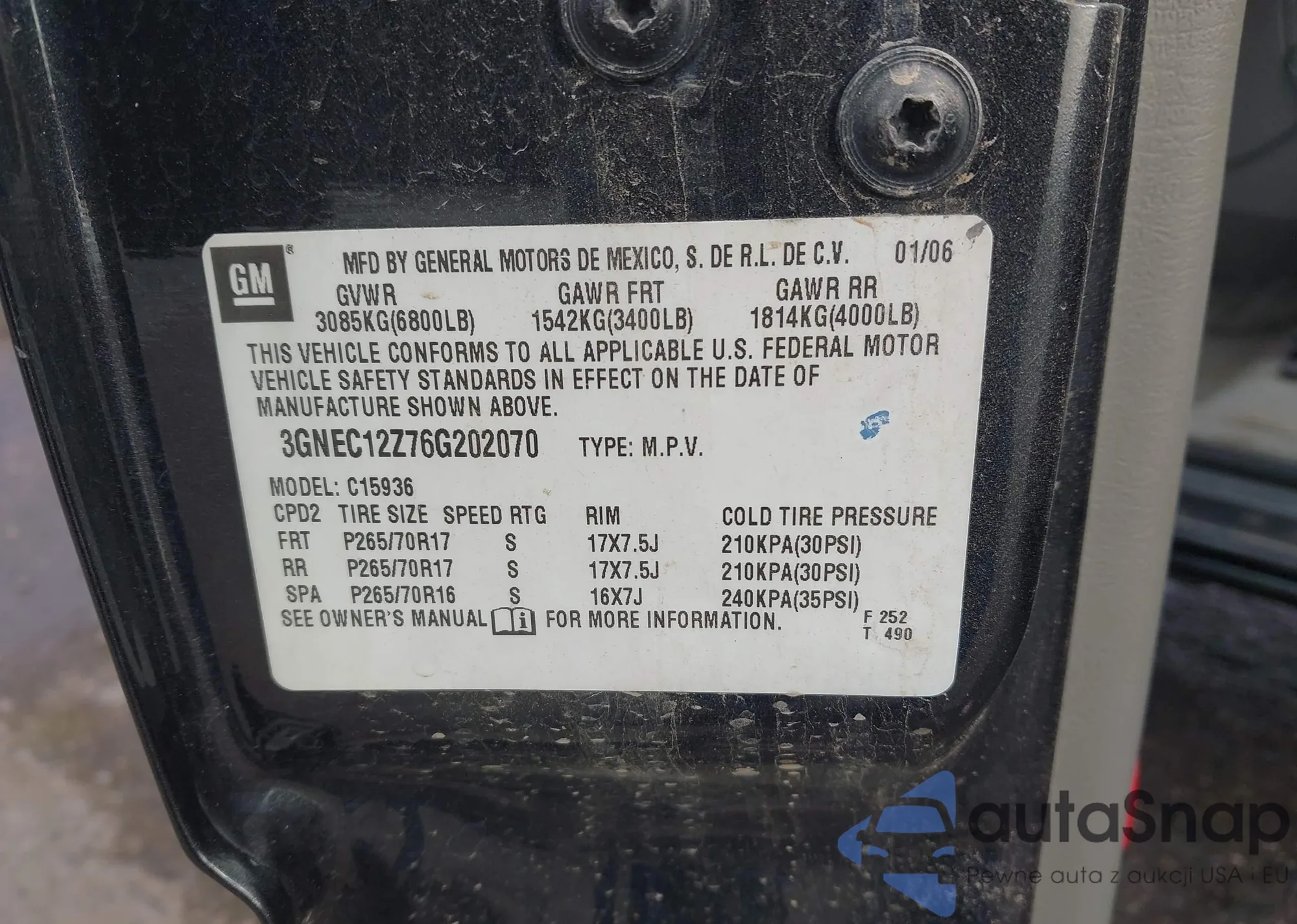 VIN: 3GNEC12Z76G202070