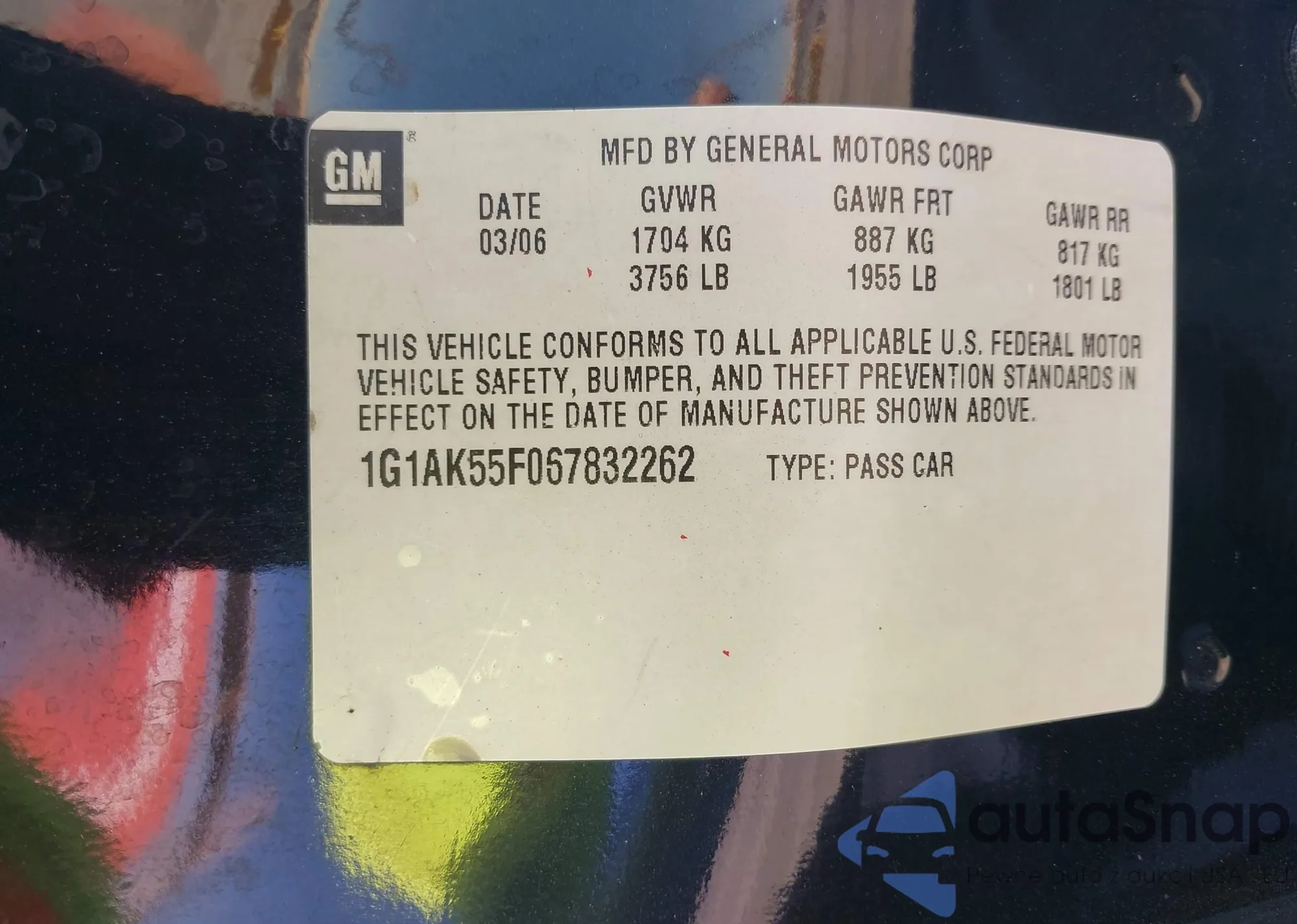 VIN: 1G1AK55F067832262