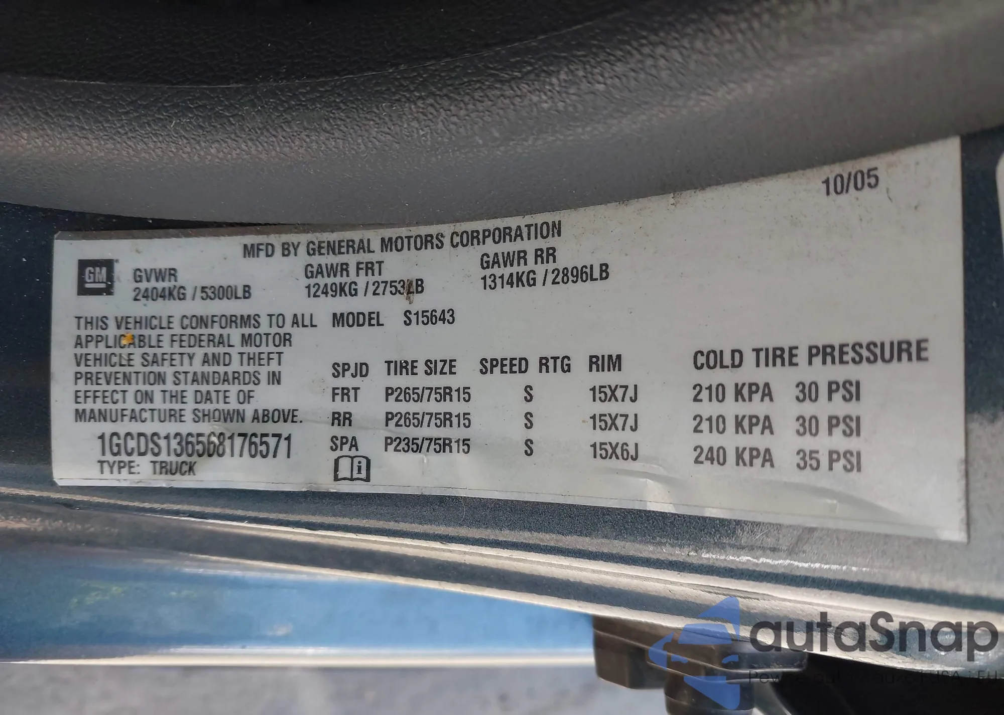 VIN: 1GCDS136568176571