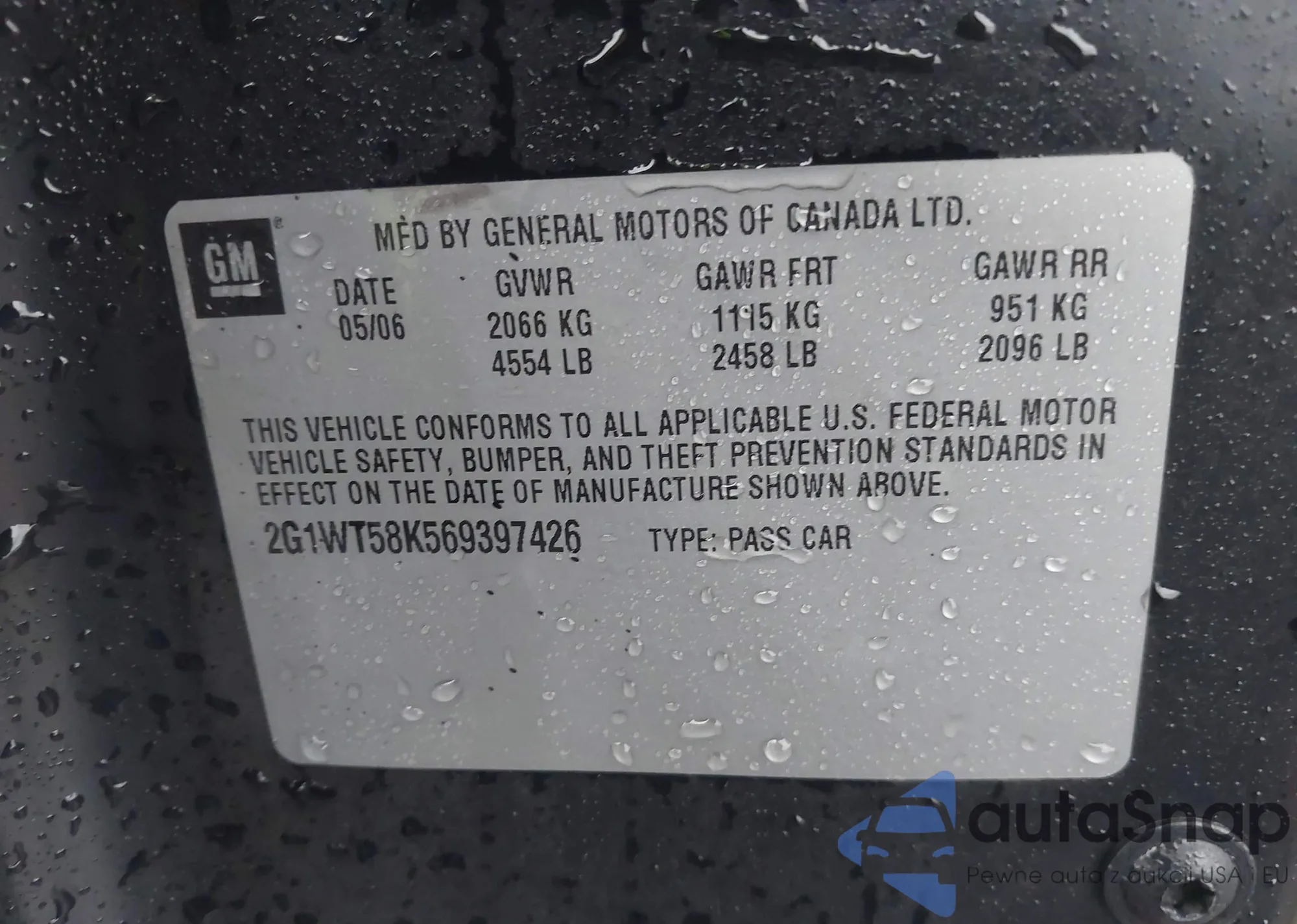 VIN: 2G1WT58K569397426