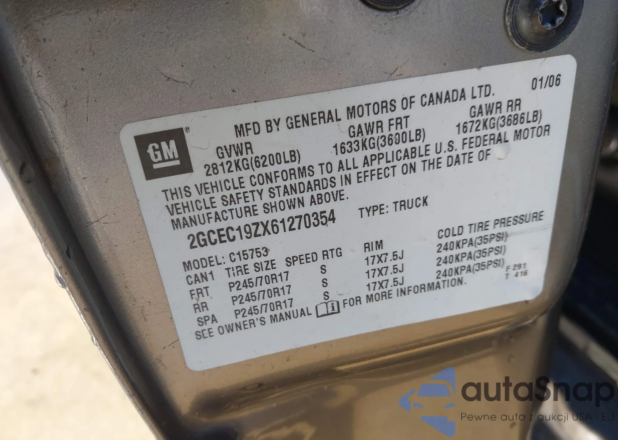 Samochód Chevrolet Silverado 2006 (VIN 2GCEC19ZX61270354) sprzedaje go niezweryfikowany sprzedawca. Zalecamy raport Carfax i potwierdzenie możliwości rejestracji pojazdu przed zakupem.