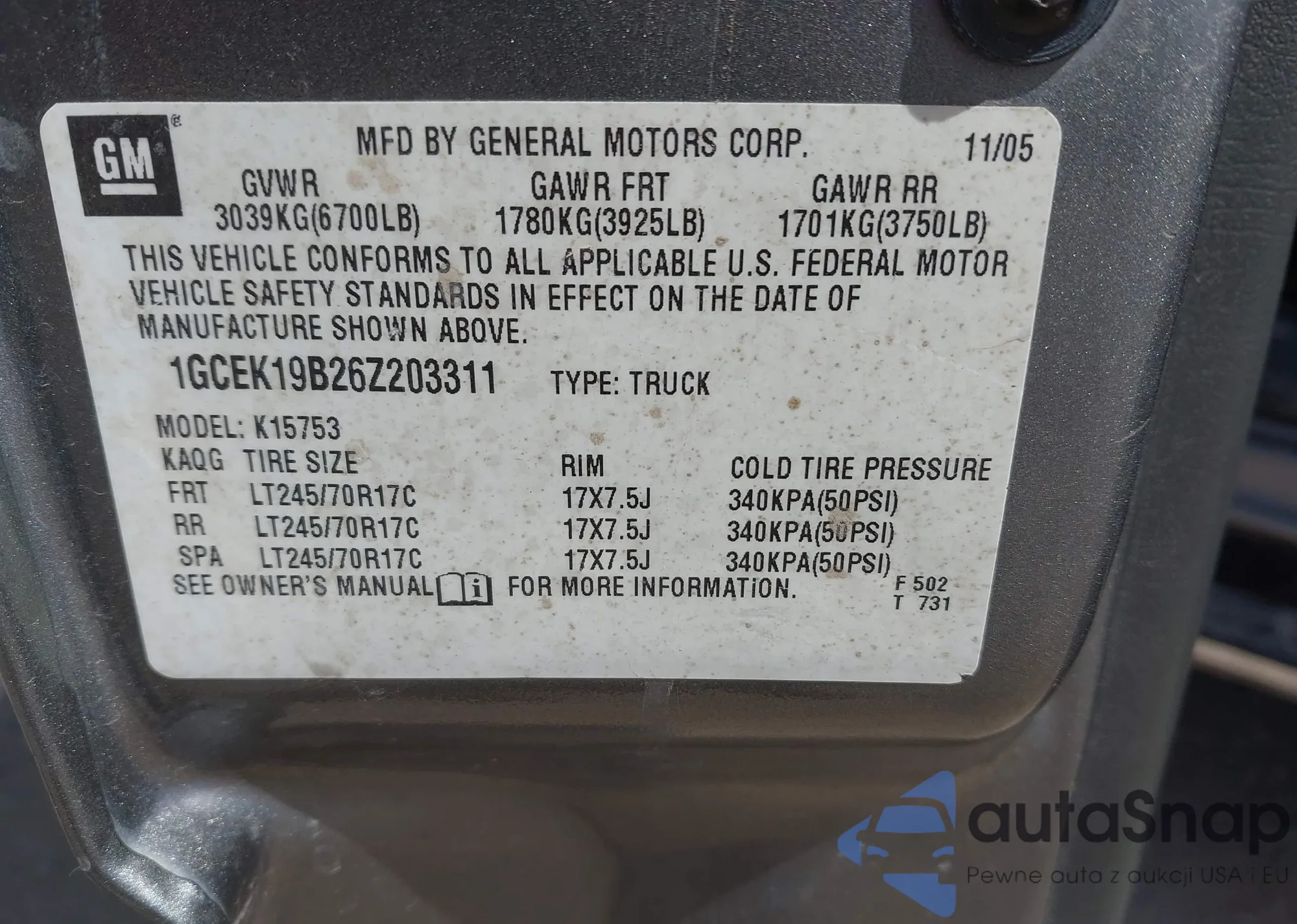 Samochód Chevrolet Silverado 2006 (VIN 1GCEK19B26Z203311) sprzedaje go niezweryfikowany sprzedawca. Zalecamy raport Carfax i potwierdzenie możliwości rejestracji pojazdu przed zakupem.