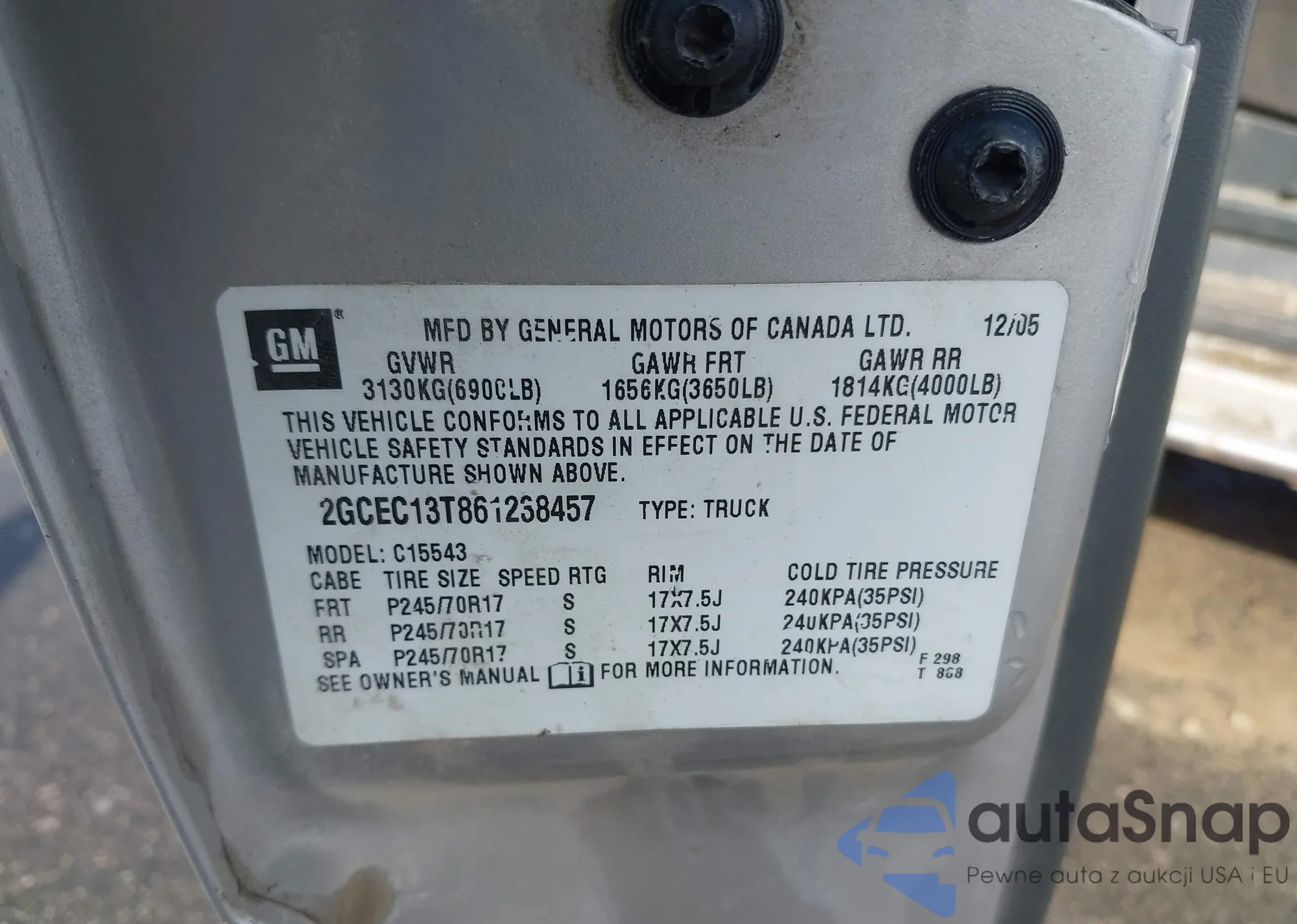 • VIN: 2GCEC13T861238457