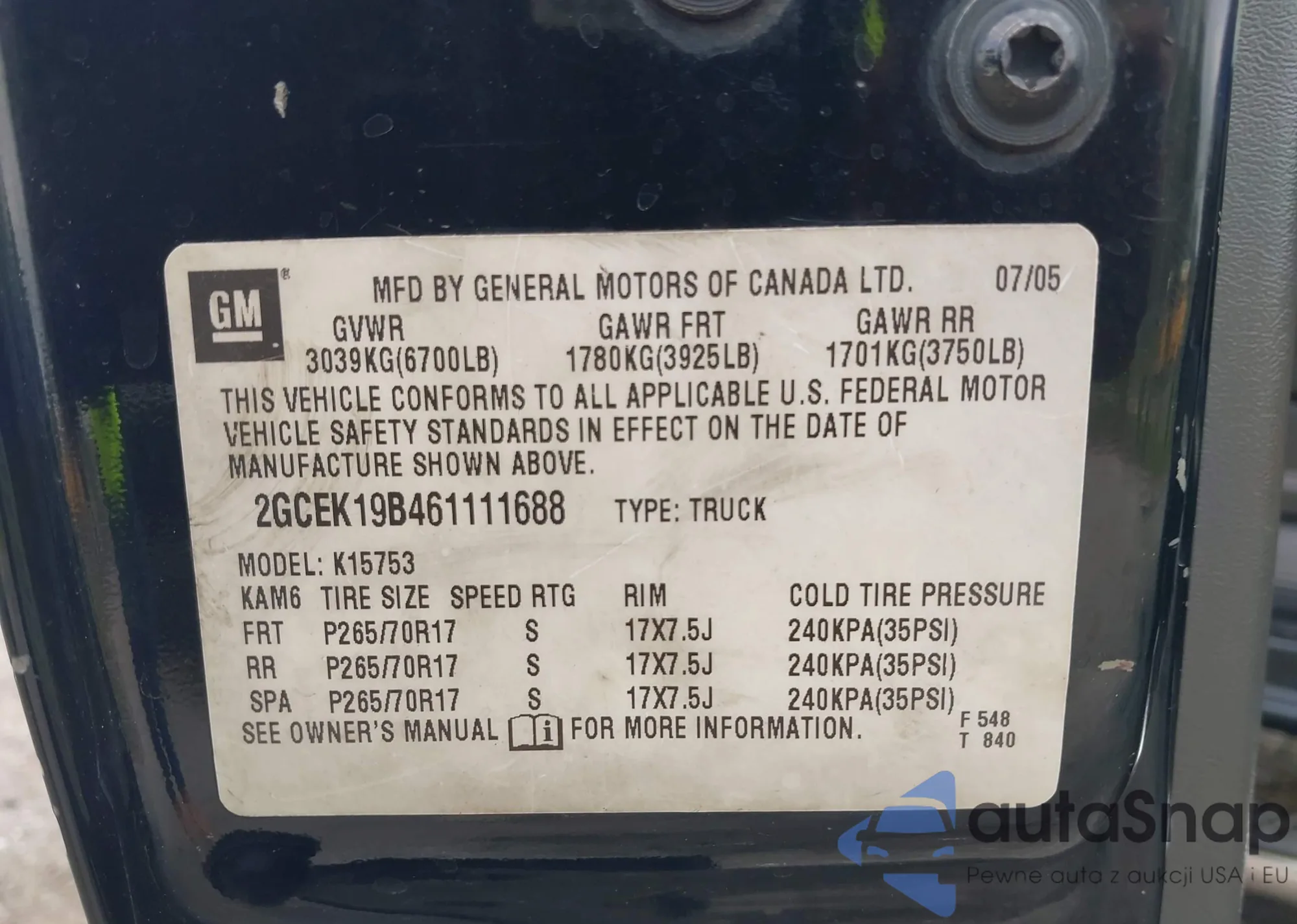 • VIN: 2GCEK19B461111688