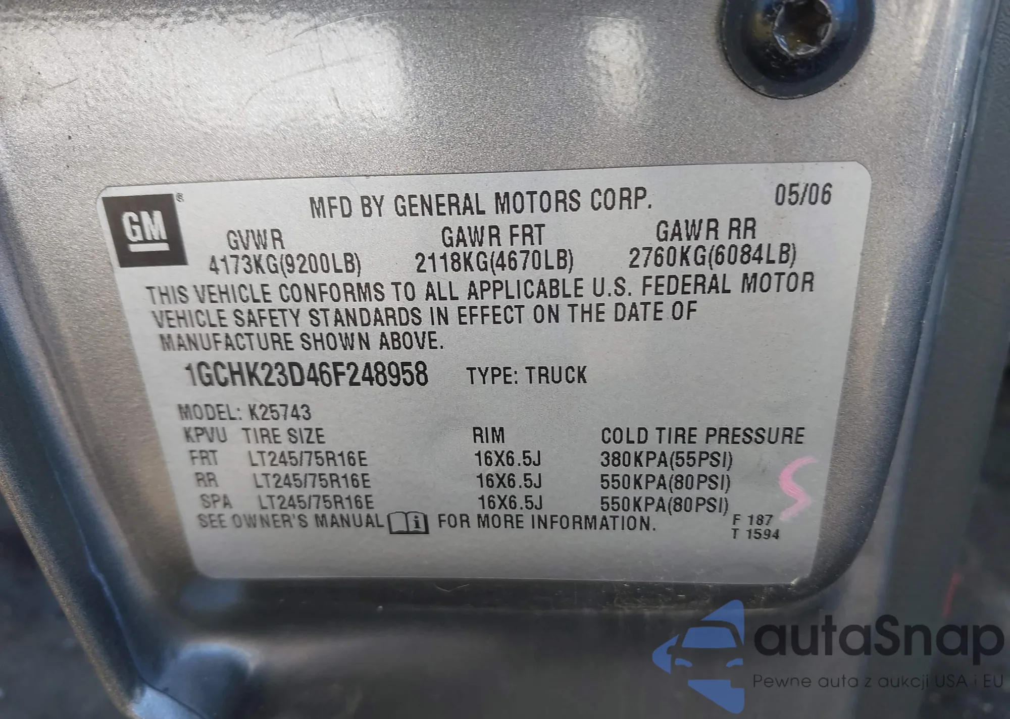 VIN: 1GCHK23D46F248958