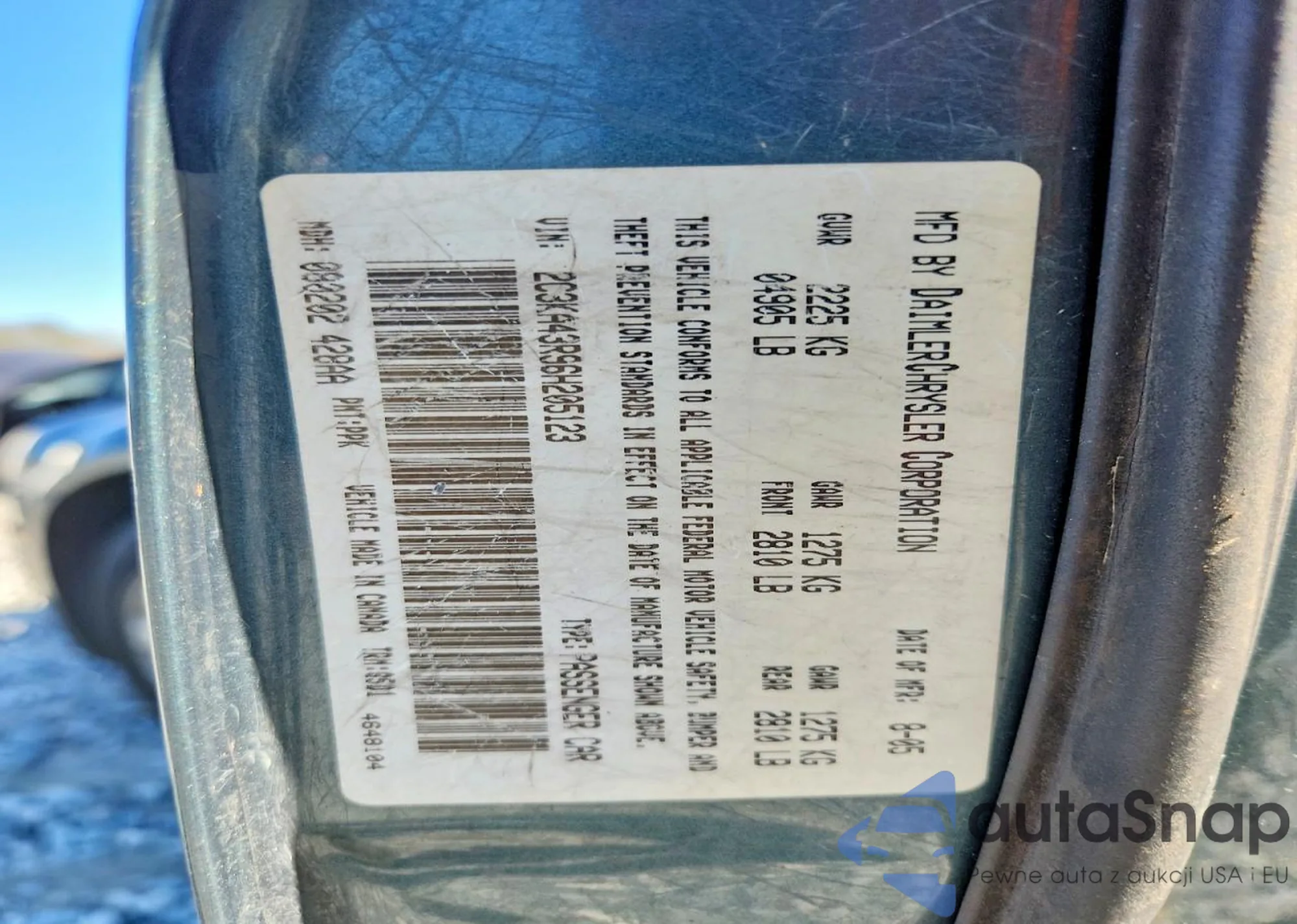 Samochód Chrysler 300 2006 (VIN 2C3KA43R96H205123) sprzedaje go niezweryfikowany sprzedawca. Zalecamy raport Carfax i potwierdzenie możliwości rejestracji pojazdu przed zakupem.