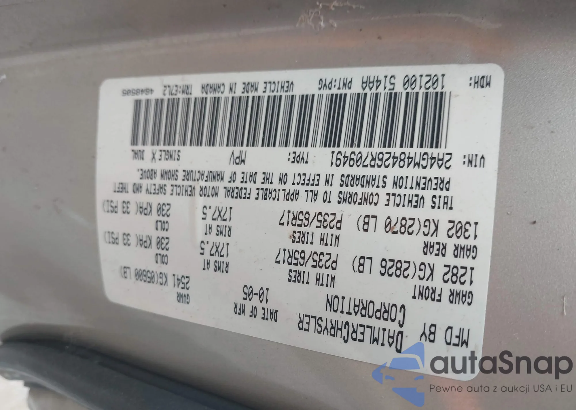 Samochód Chrysler Pacifica 2006 (VIN 2A4GM48426R709491) sprzedaje go niezweryfikowany sprzedawca. Zalecamy raport Carfax i potwierdzenie możliwości rejestracji pojazdu przed zakupem.