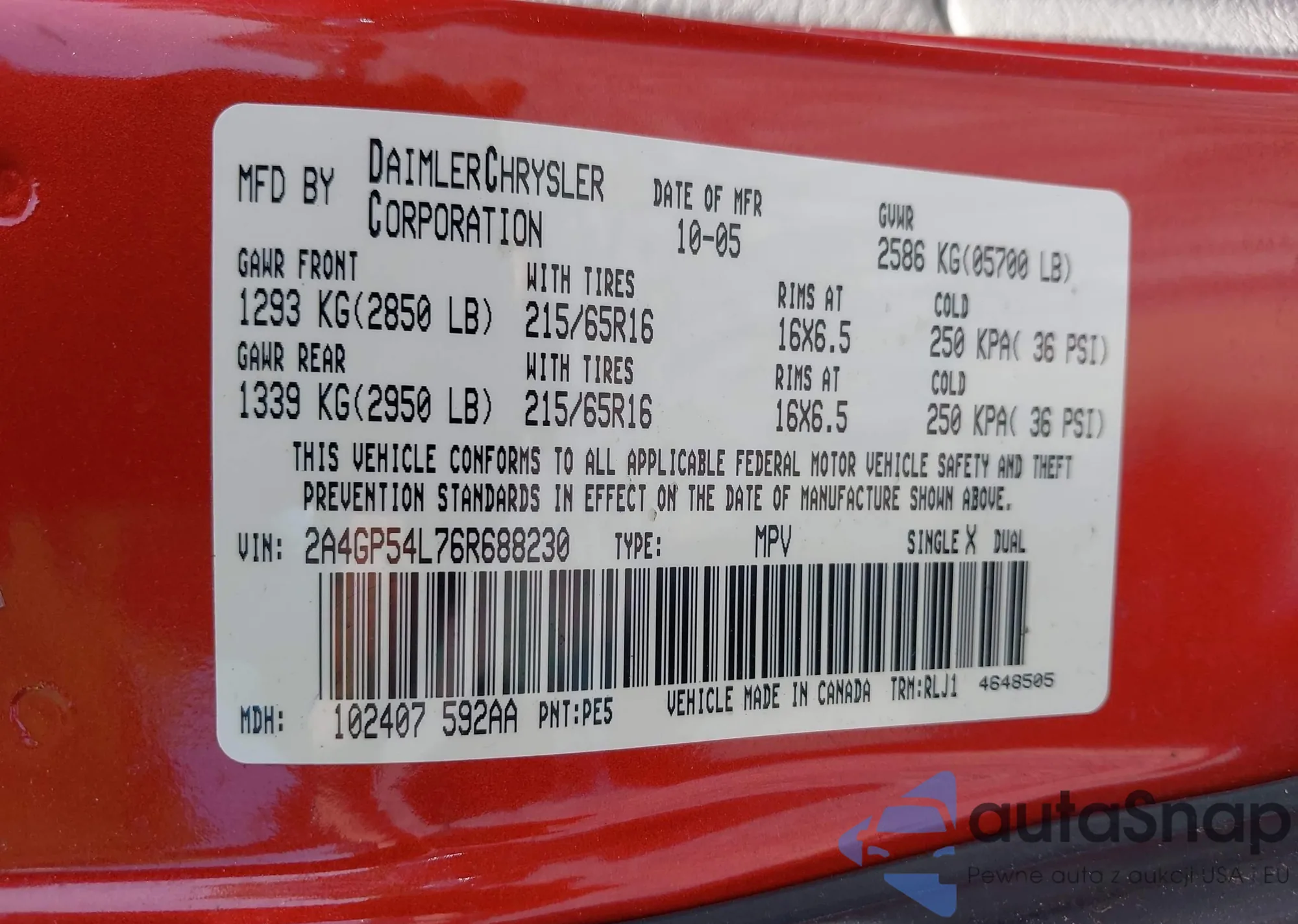 VIN: 2A4GP54L76R688230