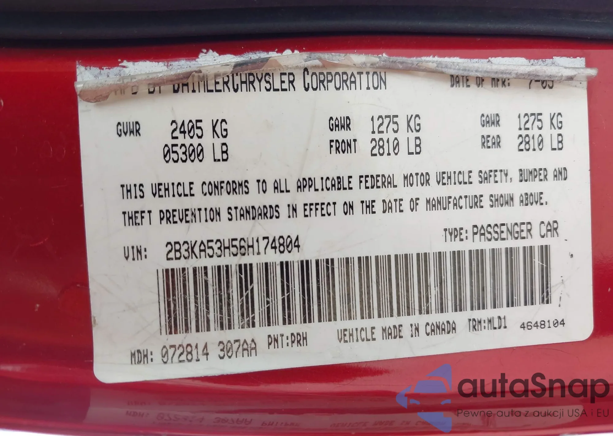 VIN: 2B3KA53H56H174804