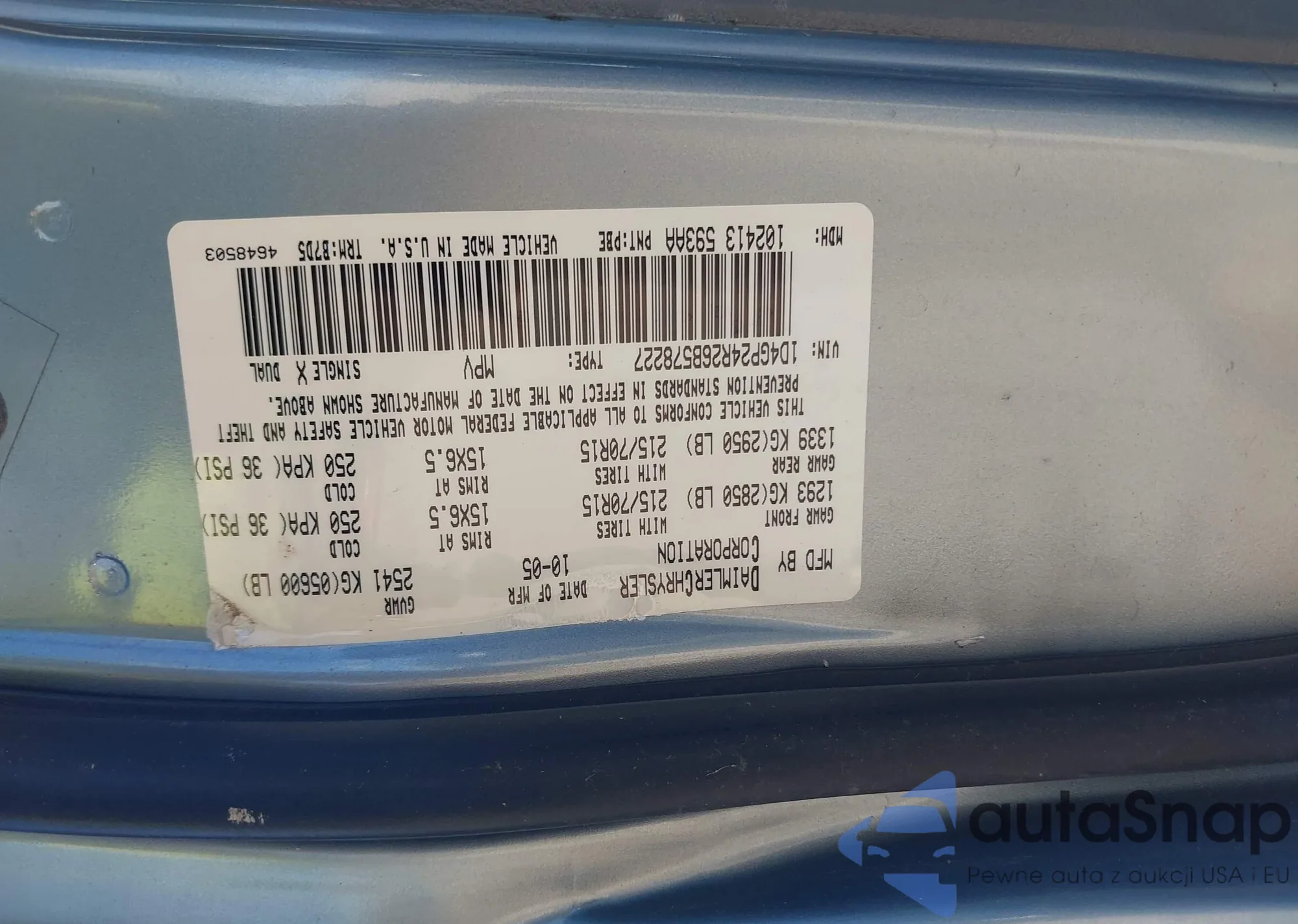 Samochód Dodge Caravan 2006 (VIN 1D4GP24R26B578227) nie był wcześniej licytowany. Dokumenty są czyste, przebieg odpowiada lub jest niższy niż średnia rynku. Sprzedaje go firma ubezpieczeniowa – polecamy zakup. Dostawa do portu zajmie ok. 6–8 tygodni.