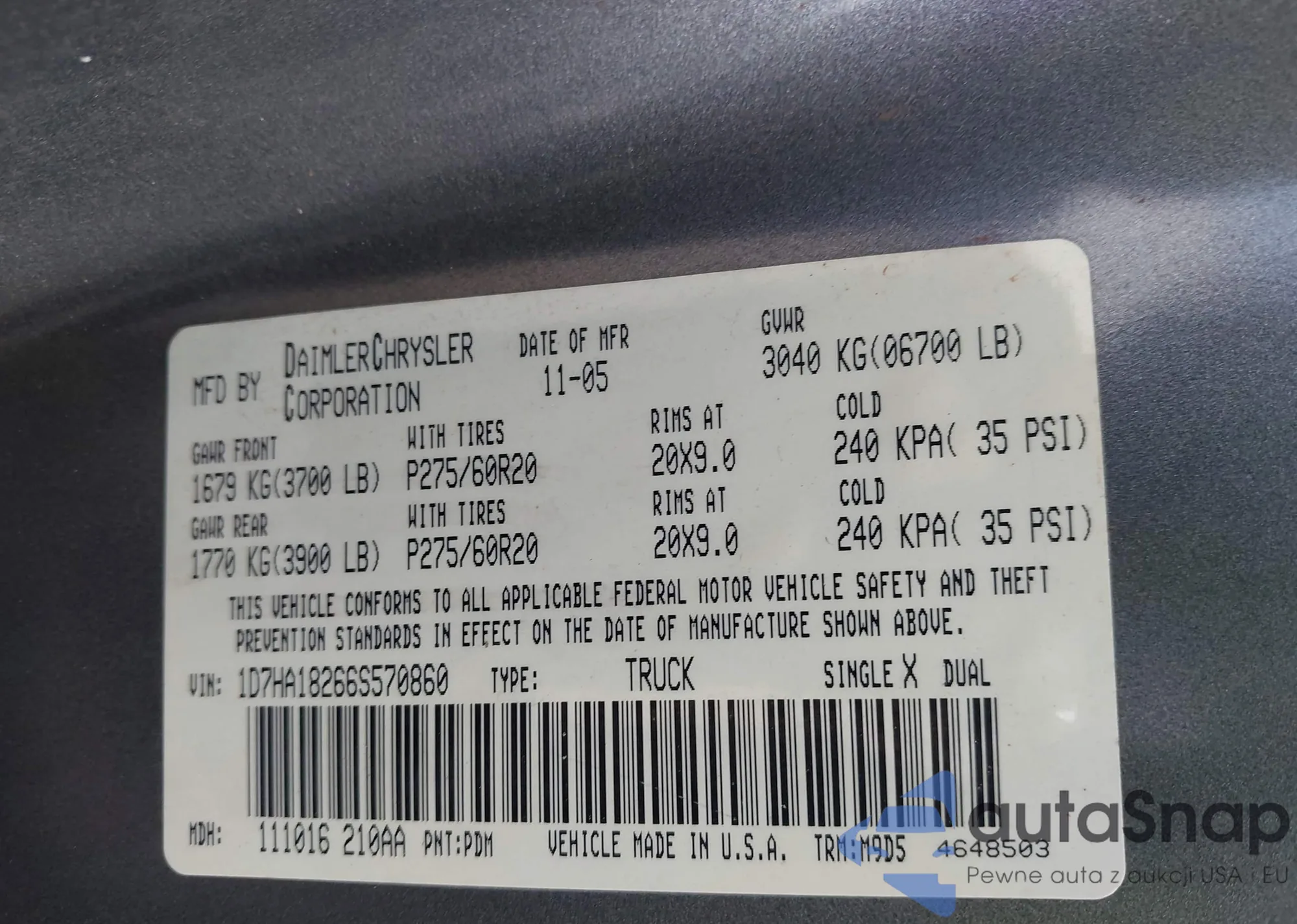 VIN: 1D7HA18266S570860