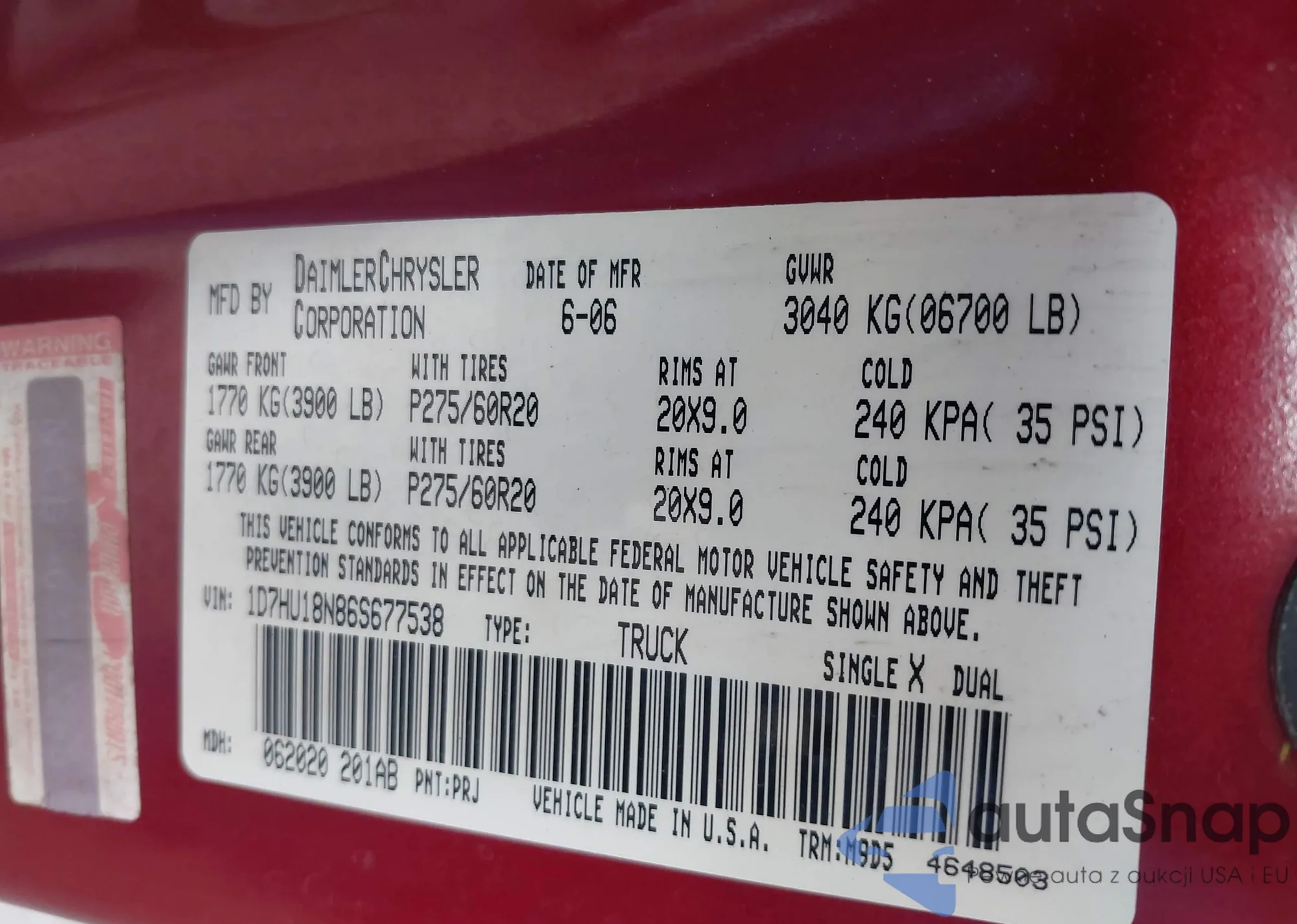VIN: 1D7HU18N86S677538