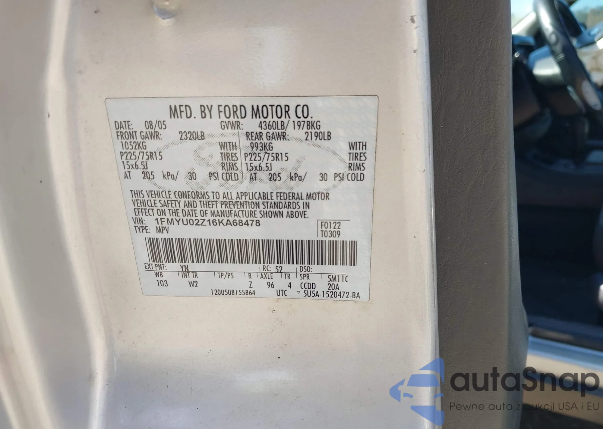 VIN: 1FMYU02Z16KA68478