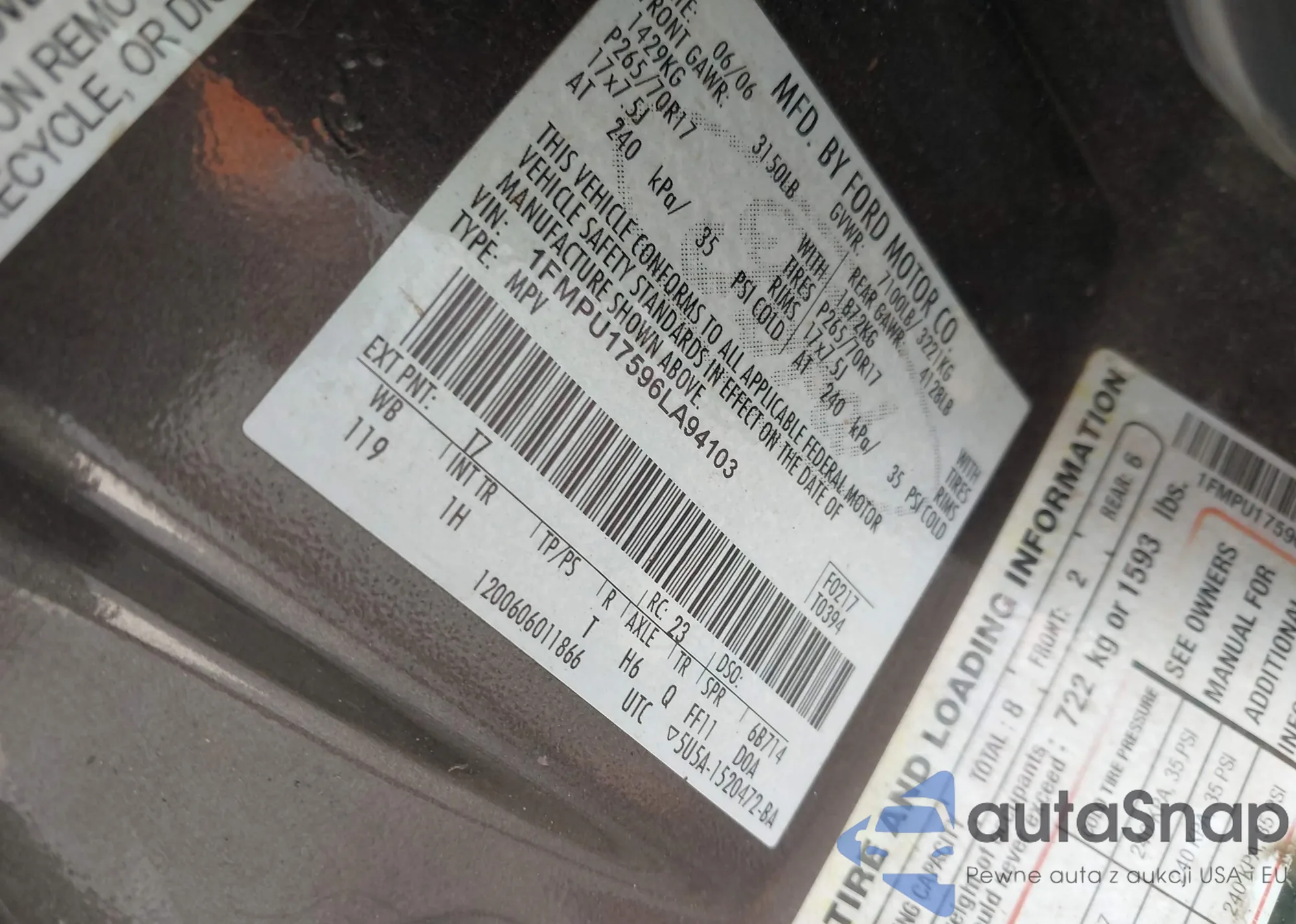 VIN: 1FMPU17596LA94103