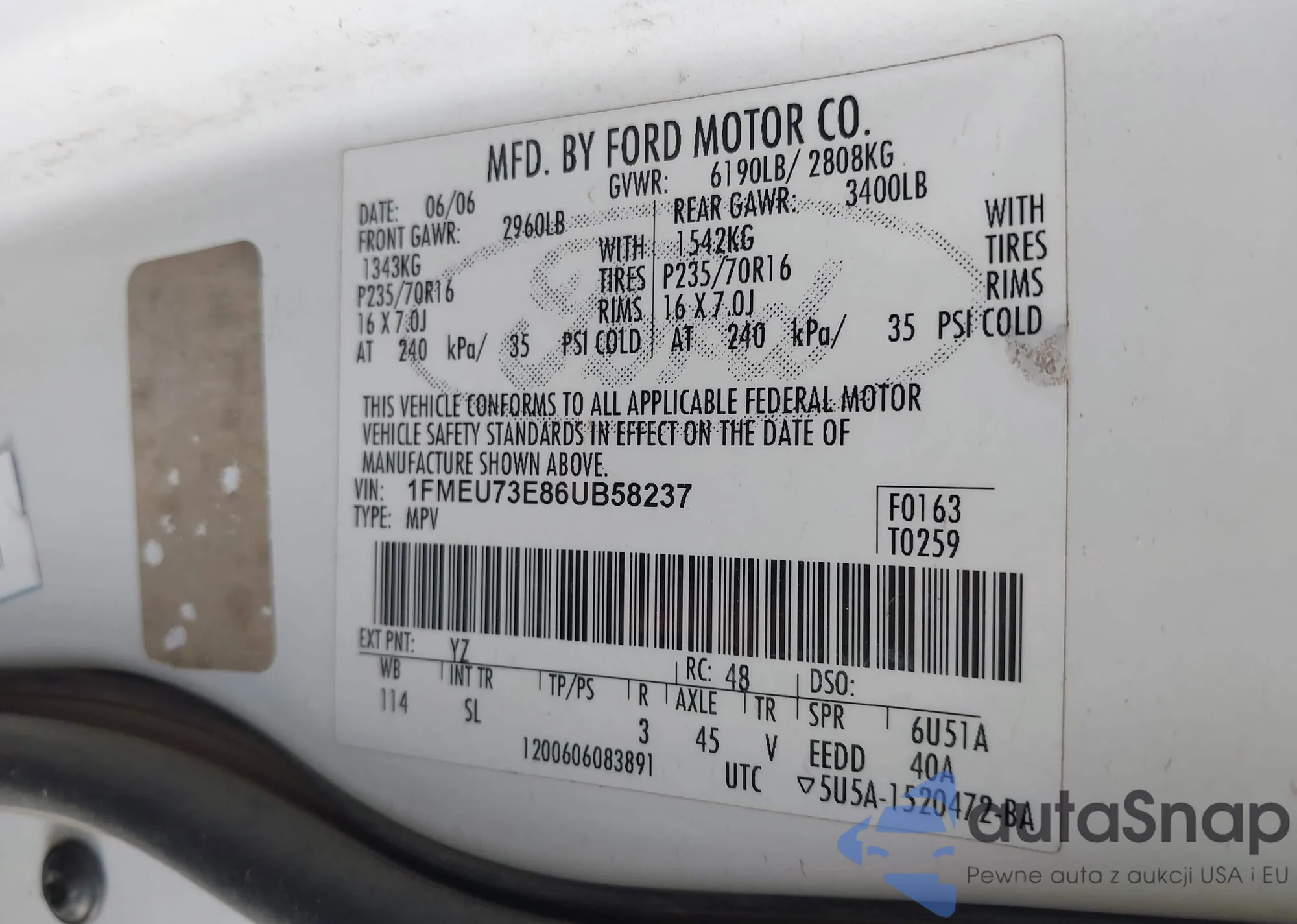 VIN: 1FMEU73E86UB58237