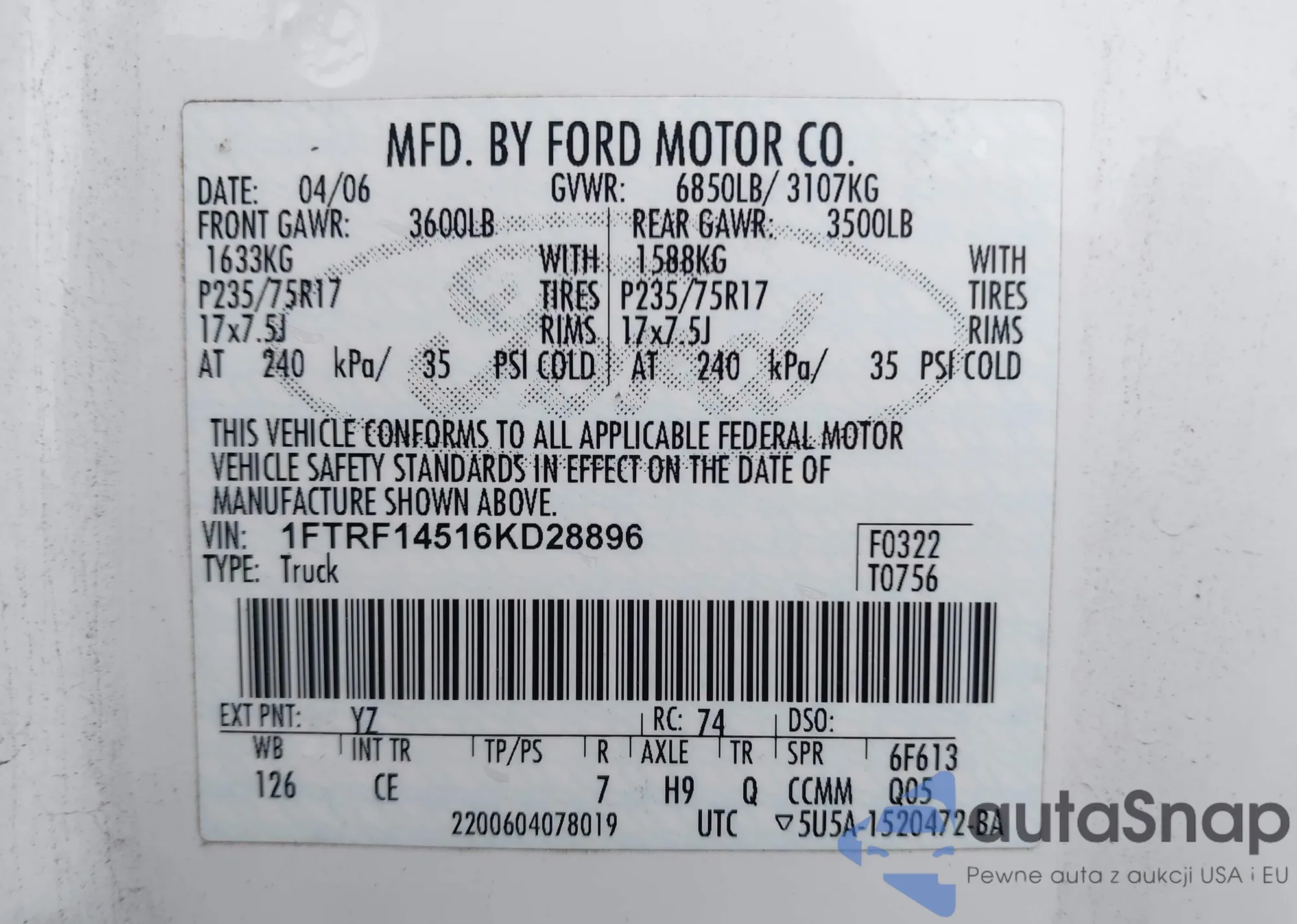 1FTRF14516KD28896 IAAI