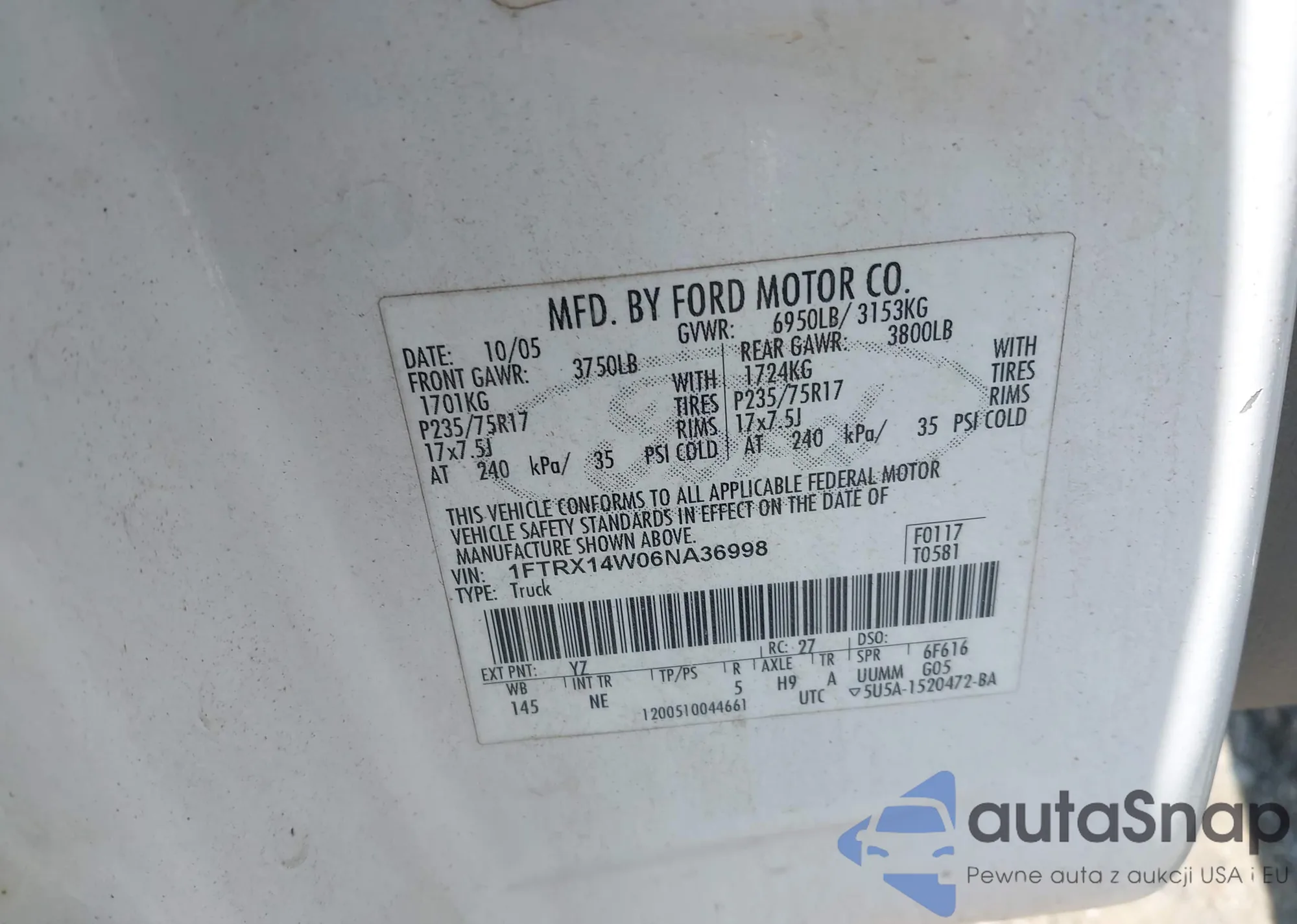 VIN: 1FTRX14W06NA36998