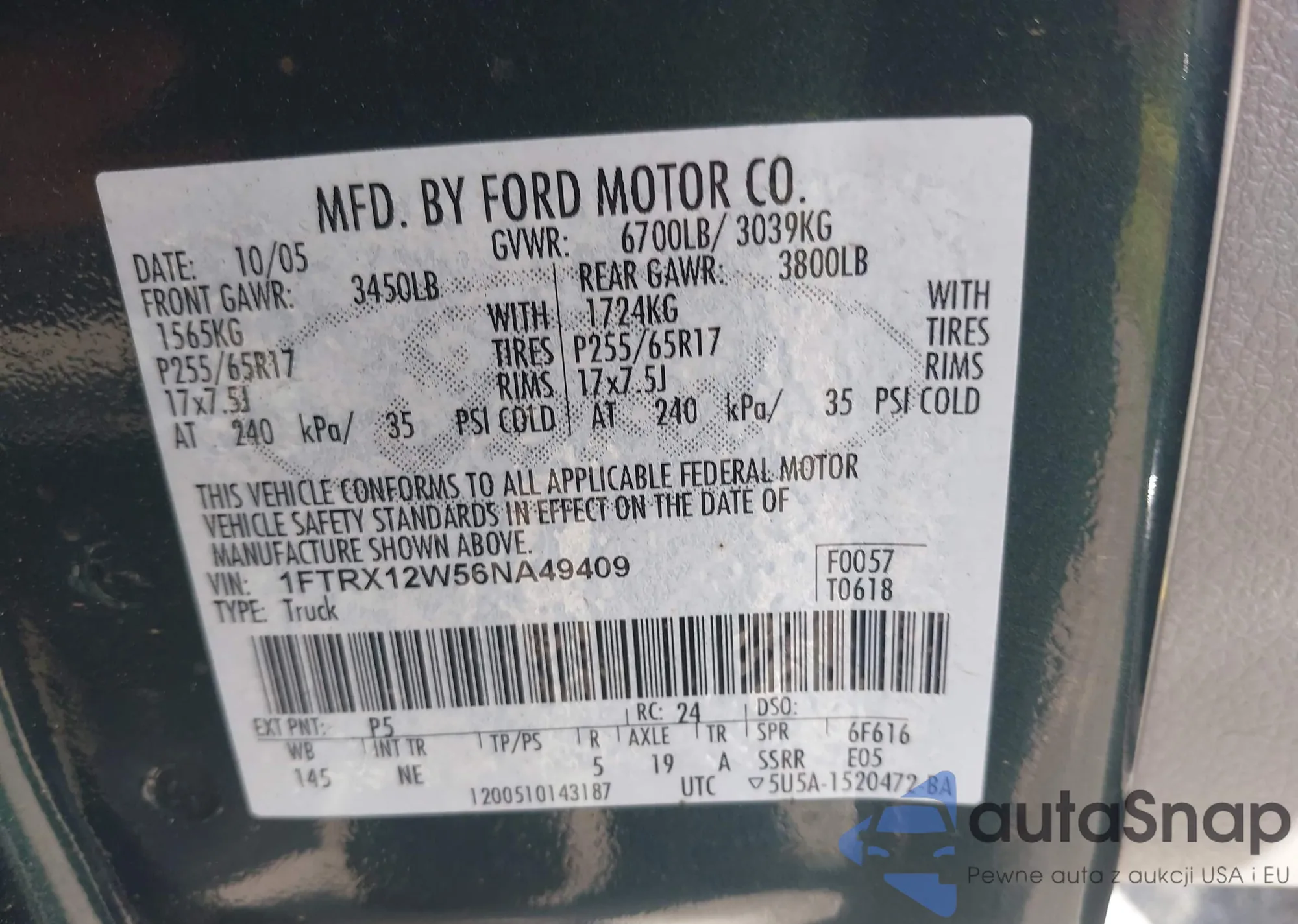• VIN: 1FTRX12W56NA49409